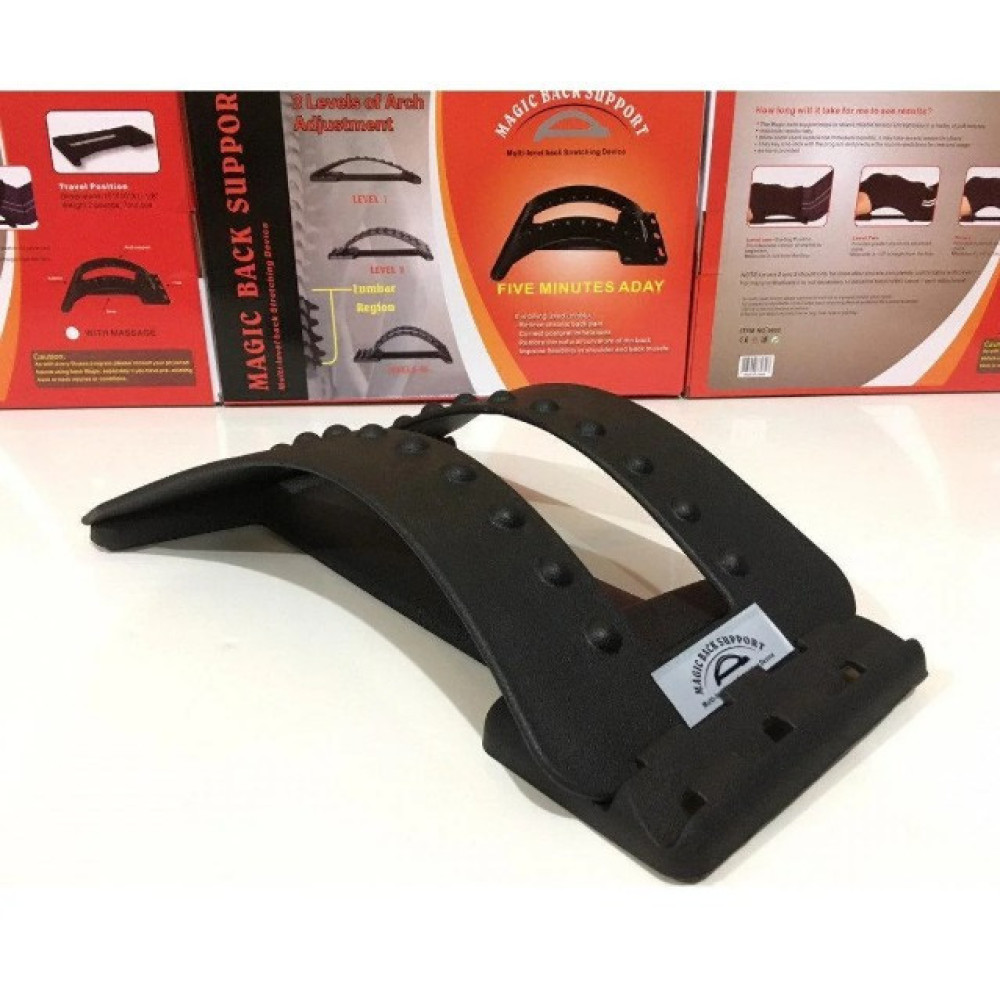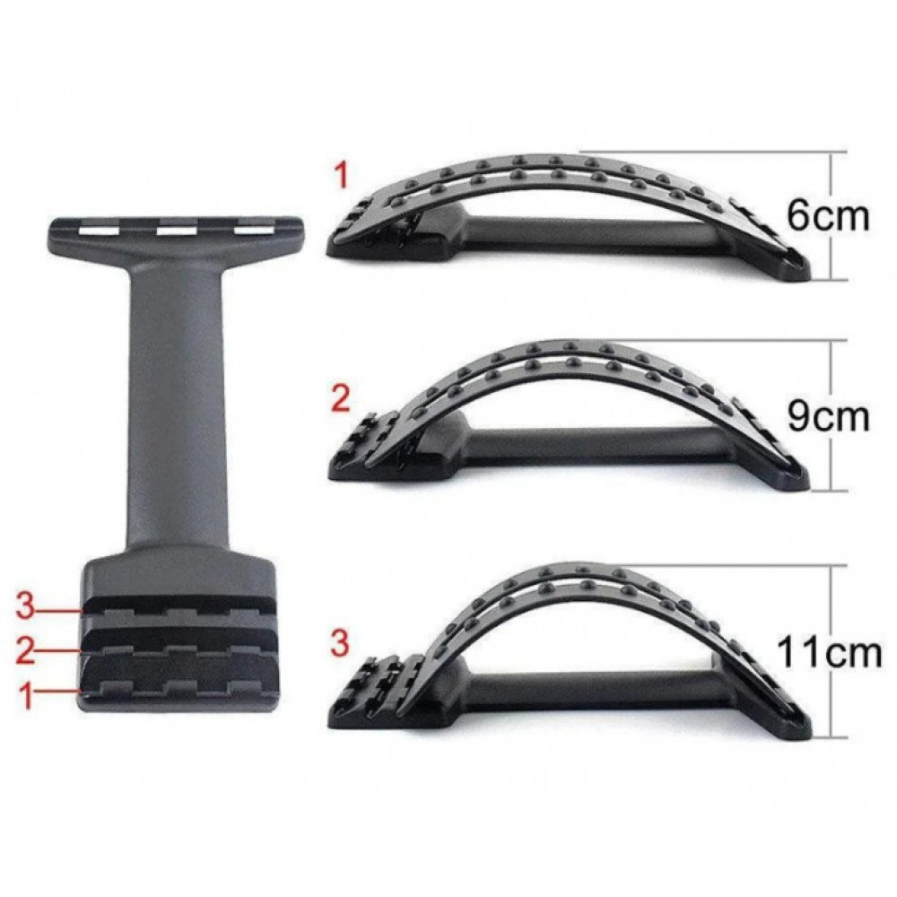 Мостик 3-х уровневый массажер для спины и позвоночника Back Magic SupportТренажер для спины будет всегда заботиться о вас. Он разработан таким образом, чтобы осуществлять безопасную и легкую растяжку позвоночника, совмещая с массажем спинных мышц. Имеет 3 уровня фиксации, которые подбираются исходя из ваших индивидуальных способностей, возможностей и предпочтений. Неподготовленному человеку, у которого имеются те или иные проблемы со спиной и поясницей рекомендуется начинать использование с первого, самого щадящего уровня. Это простой и пассивный способ, который позволит мягко растянуть всю спину, помогая устранить источник боли в спине и восстановить естественную кривизну позвоночного столба. Далее, по мере использования, вы почувствуете, что сможете использовать и другие уровни. Слушайте свое тело!Тренажер Мостик отличает невероятная эффективность в устранении различных болей в спине и пояснице (в том числе хронических), простота использования и возможность осуществлять безопасное лечение и профилактику проблем в домашних условиях.Принцип действия:Когда вы ложитесь на тренажер, сила тяжести позволяет беспрепятственно и без особых усилий растягиваться передней части вашего тела вверх, после чего все окружающие мышцы начинают постепенно расслабляться, осторожно освобождая диски в позвонках. В результате, происходит очень мягкое перепрофилирование позвоночника, снимается напряжение и боль, улучшается осанка и походка. Вы будете поражены тем, насколько хорошо вы себя чувствуете уже после первого применения! Изготовлен тренажер-массажер спины Back Magic Support из очень прочного ABS пластика, позволяющего спокойно выдерживать вес даже очень тучного человека. Таким образом вы можете быть спокойны и уверены в его качестве.Как использовать тренажер:Как уже говорилось выше, массажер имеет несколько уровней настройки (высота изгиба). Поэтому, для начала использования нужно вставить верхнюю массажную пластину-мат в соответствующий паз. Рекомендуется использовать тренажер Мостик для спины на твердой поверхности, например на полу (допускается на не мягкой кровати). Постелите одеяло, расположите тренажер под спину широким концом к области копчика и аккуратно прилягте так, чтобы позвоночник попадал в прорезь по центру. Это легко и не вызовет у вас никаких затруднений. Далее, просто полежите на нем в течение 5-10 минут. Комфортные и приятные ощущения наступают, как правило, спустя 2-3 минуты, по мере начала расслабления околопозвоночных мышц спины. Для достижения наилучших результатов проводите такую процедуру 2 раза в день (например, утром и вечером перед сном). Лучше всего после использования некоторое время полежать на кровати или лечь спать. Примечание: также применять массажер позвоночника можно сидя (например,в случае, когда вы продолжительное время работаете за компьютером). Просто подставьте его к спинке кресла и облокотитесь на него. Вы почувствуете себя значительно лучше! Всем водителям знакомы неприятные ощущения в спине, возникающие при продолжительном вождении. Просто возьмите Back Magic Support с собой в дорогу, и применяйте его время от времени. Поверьте, ни разу не пожалеете!Особенности: легкое и безопасное растяжение позвоночника устранение хронических болей в спине и пояснице восстановление правильной осанки и естественной