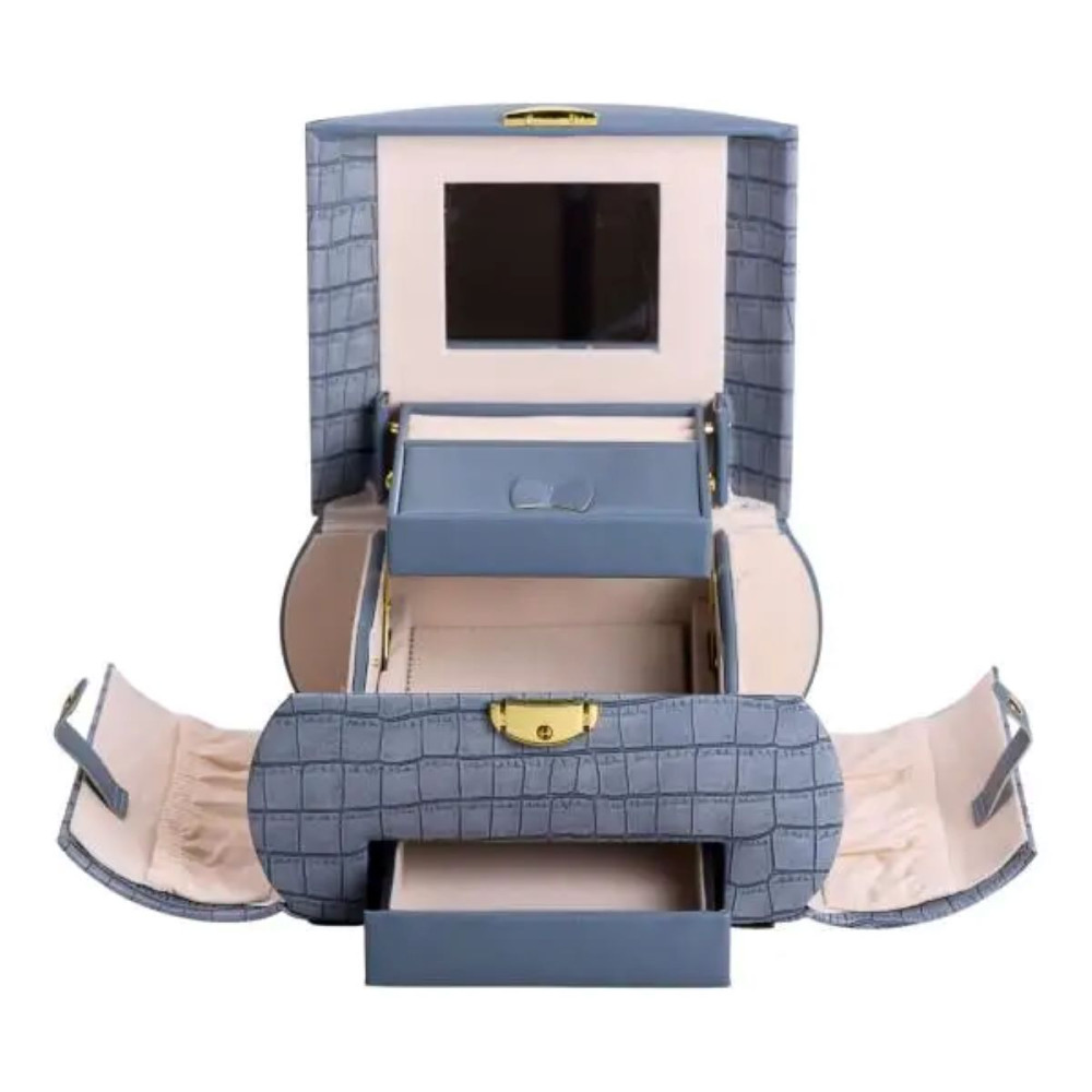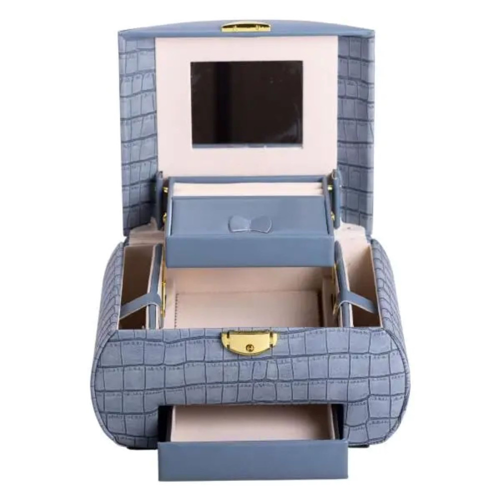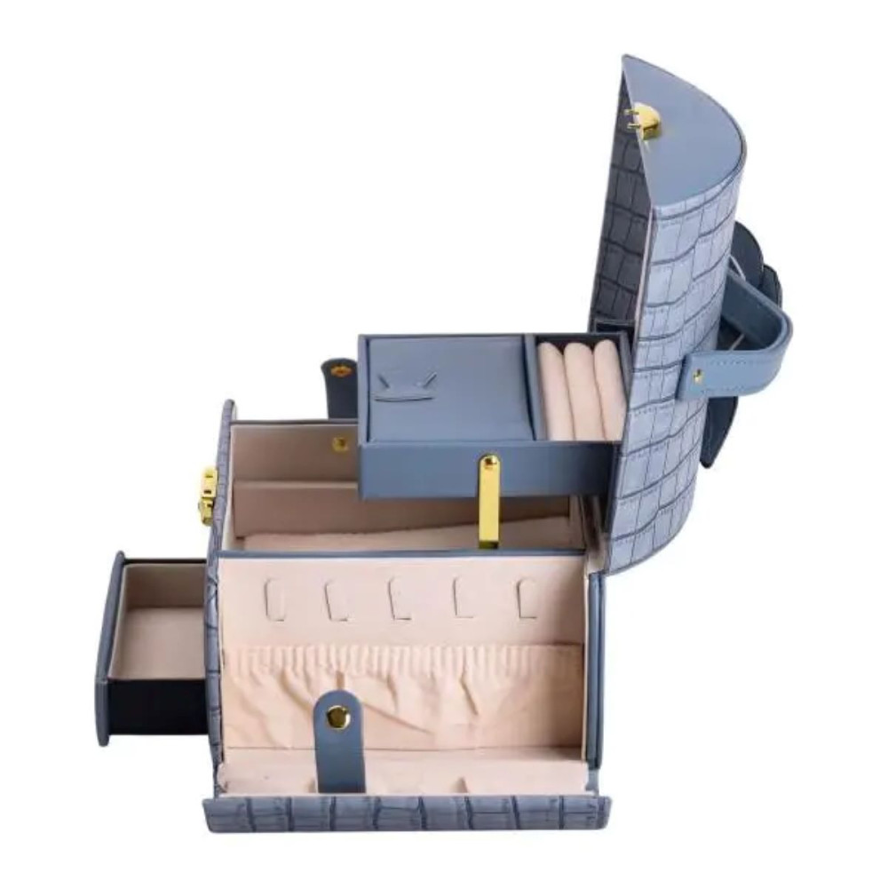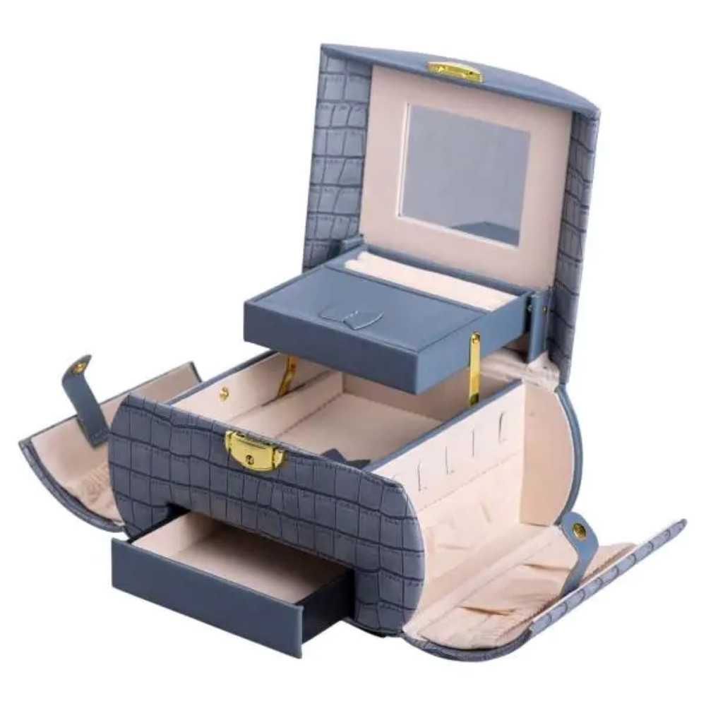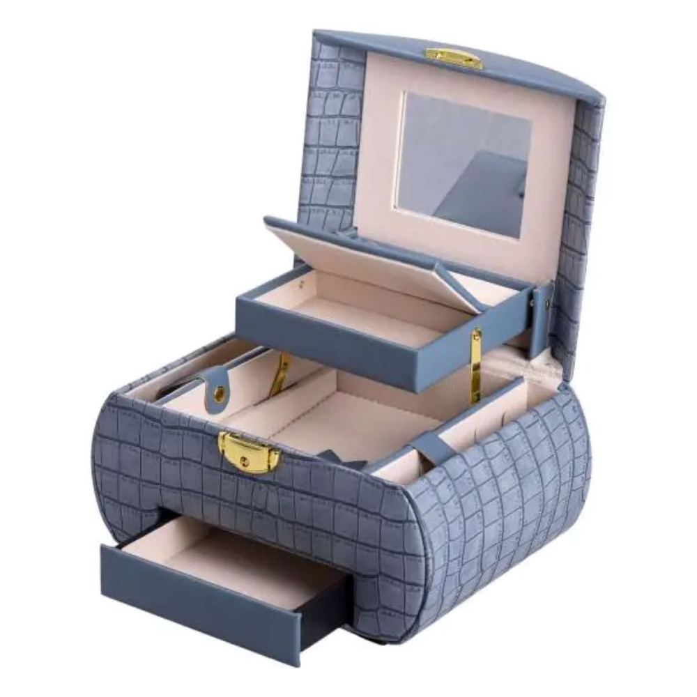 Немає відгуків про товар Шкатулка для украшений из эко кожи 3 яруса с замком органайзер для ювелирных изделий HP-5-21BL