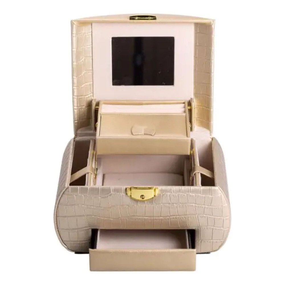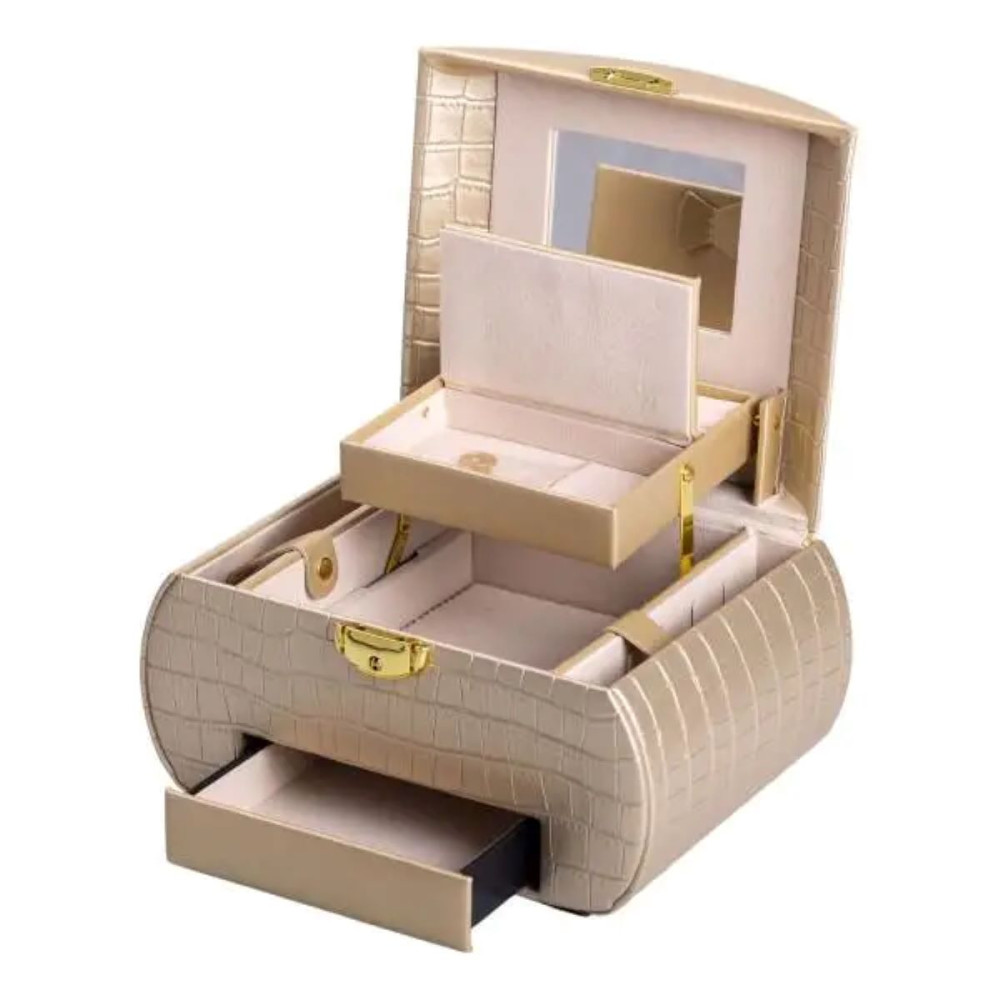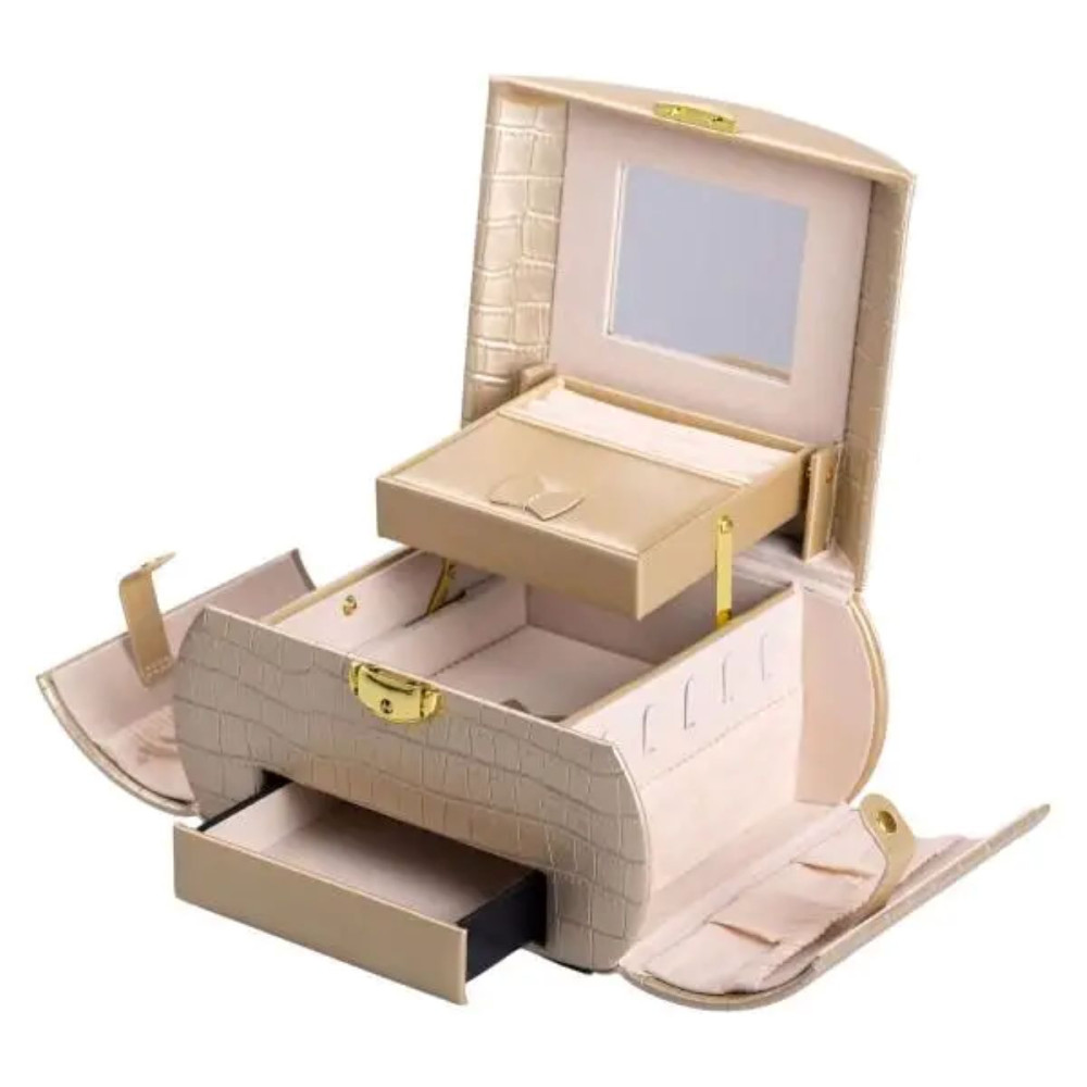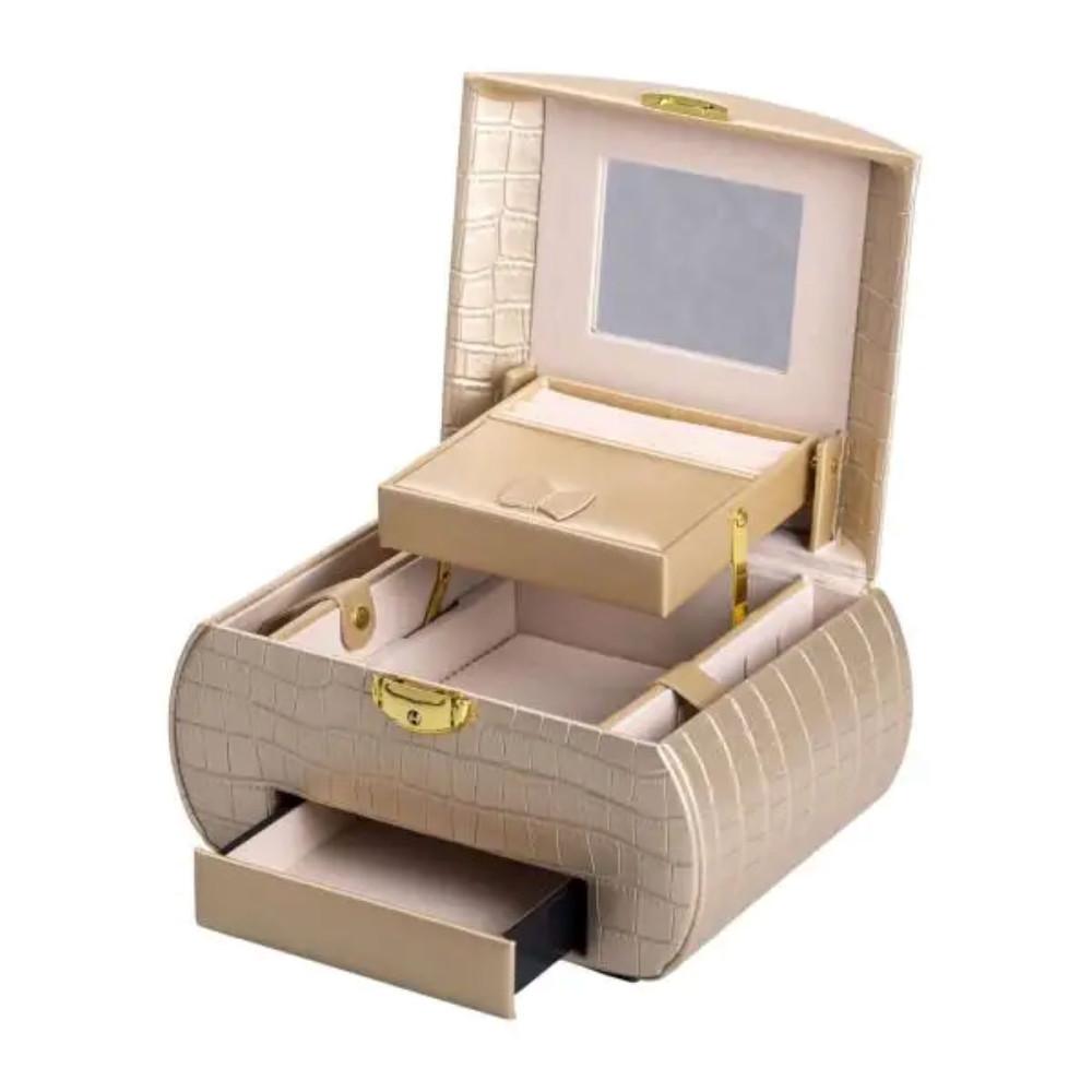 Шкатулка для украшений из эко кожи, 3 яруса - идеальный органайзер для бережного хранения ваших ювелирных изделий. Компактный и функциональный дизайн с размерами 24×17×18 см обеспечивает удобство использования и легкость хранения. Выполненная из качественной эко кожи, эта шкатулка станет стильным дополнением любого интерьера, сочетая в себе практичность и элегантность, а замок обеспечит сохранность Ваших украшений. Основные характеристики органайзера для хранения бижутерии размеры шкатулки для украшений 24×17×18 см; количество ярусов - 3 шт; количество отсеков - 6 шт; материал корпуса - экокожа; внутреннее покрытие - велюр; зеркало в комплекте. Шкатулка оборудована тремя вместительными ярусами, предлагающими 6 разнообразных отсеков. Это позволяет аккуратно разместить кольца, серьги, цепочки, браслеты и другие украшения, предотвращая их повреждения и спутывание. Внутреннее покрытие из мягкого велюра обеспечивает дополнительную защиту от царапин и повреждений. Основные преимущества шкатулки для украшений из эко-кожи Экологичная кожа приятна на ощупь, долговечна и устойчива к внешним повреждениям, а велюровое покрытие внутри бережно хранит драгоценности и предотвращает появление царапин. Благодаря 6 отдельным отсекам и трем просторным ярусам, все украшения аккуратно размещены и всегда находятся под рукой. Современное исполнение и сдержанные цвета органично вписываются в любой интерьер, превращая органайзер в стильный элемент декора. Встроенное зеркало добавляет функциональности и облегчает выбор украшений. Качественный замок обеспечивает сохранность и защиту ювелирных изделий от случайного открытия и потери. Отличное решение для подарка по любому поводу: День рождения, 8 марта, годовщина, День святого Валентина или Новый год. Дополнительным преимуществом модели является встроенное зеркало, удобное для примерки украшений и ухода за собой. Надежная застежка гарантирует безопасное хранение ваших драгоценностей, исключая случайное открытие шкатулки. Шкатулка из экокожа отлично подходит в качестве подарка на любой праздник, а также будет полезным приобретением для личного использования. Купить шкатулку для ювелирных изделий можно с доставкой по всей Украине.