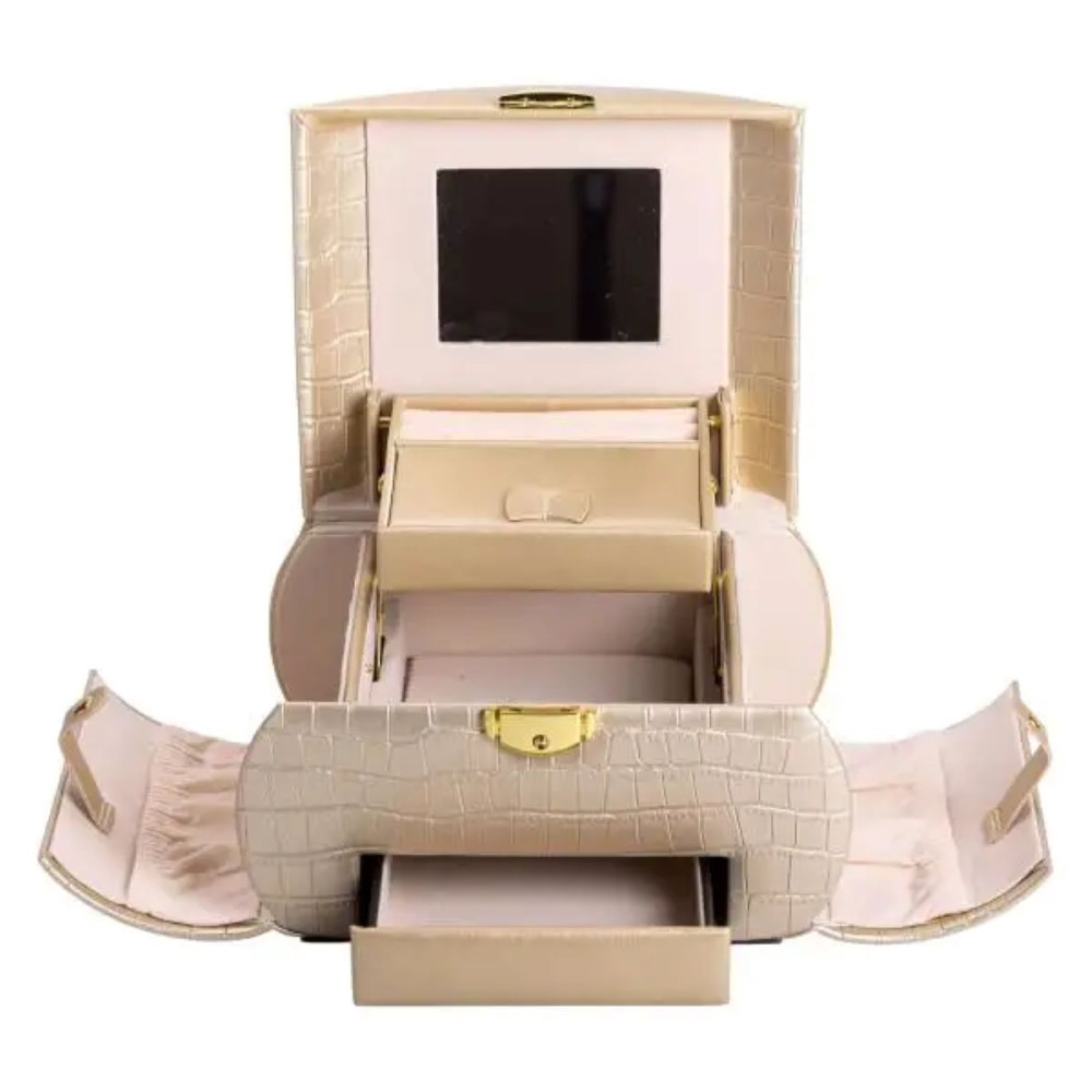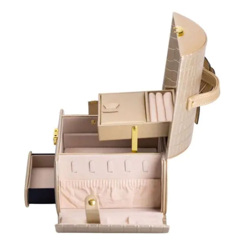 Немає відгуків про товар Шкатулка для украшений из эко кожи 3 яруса с замком органайзер для ювелирных изделий HP-5-21GOLD