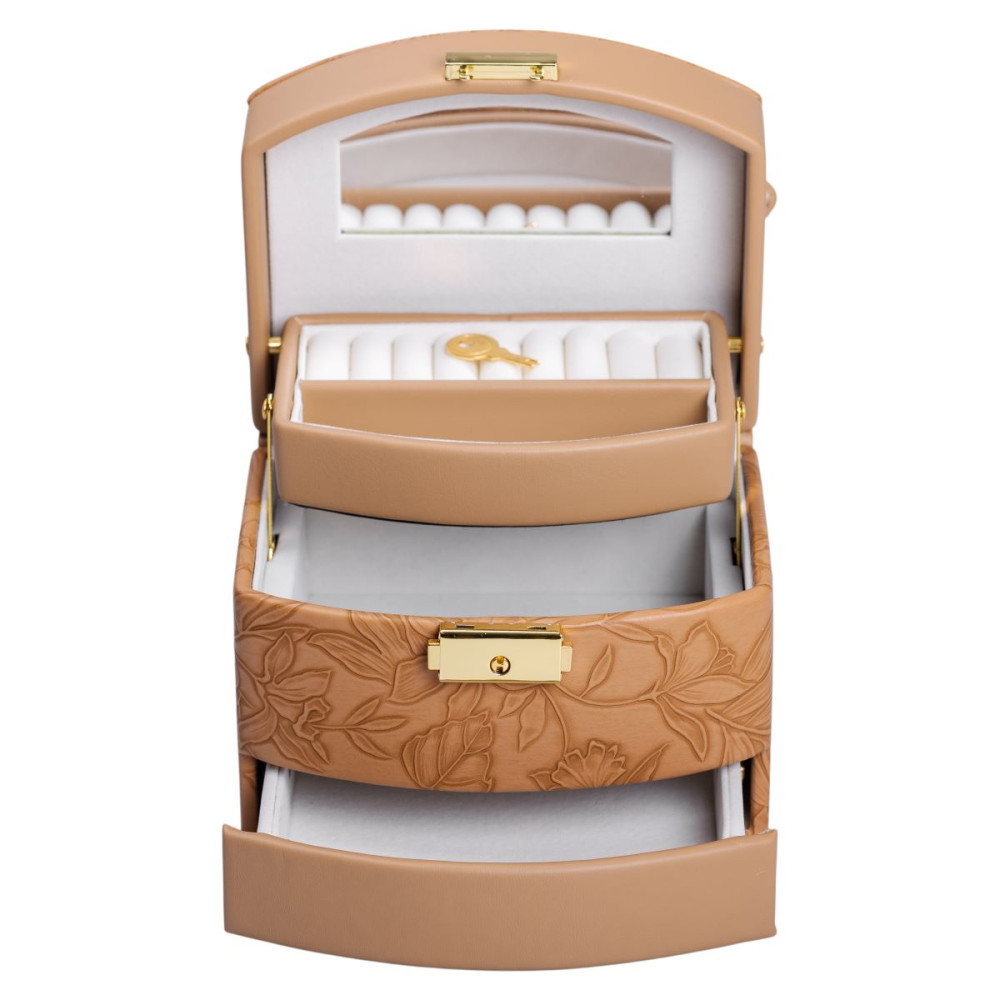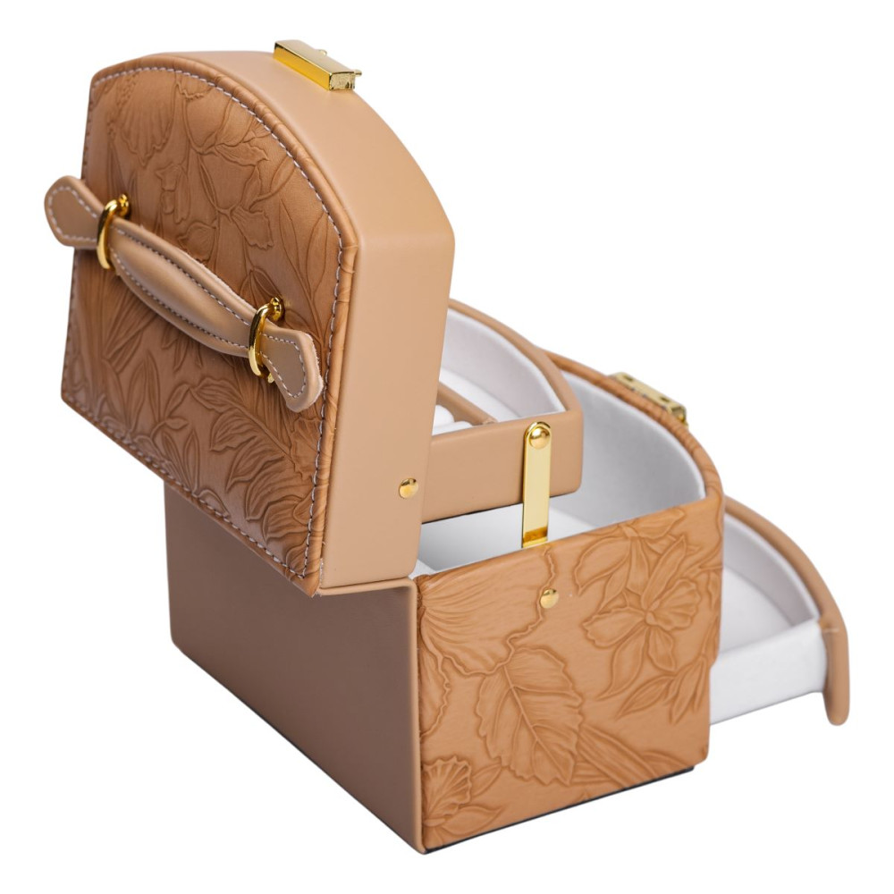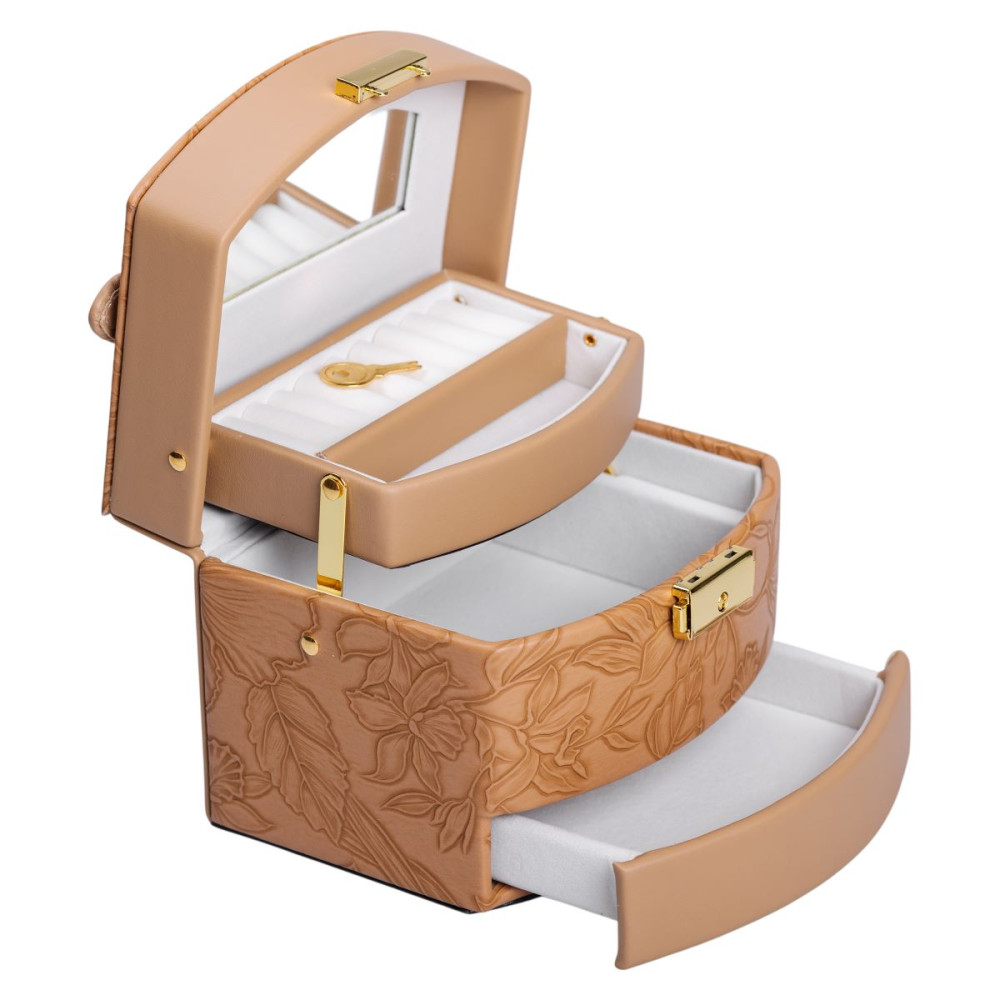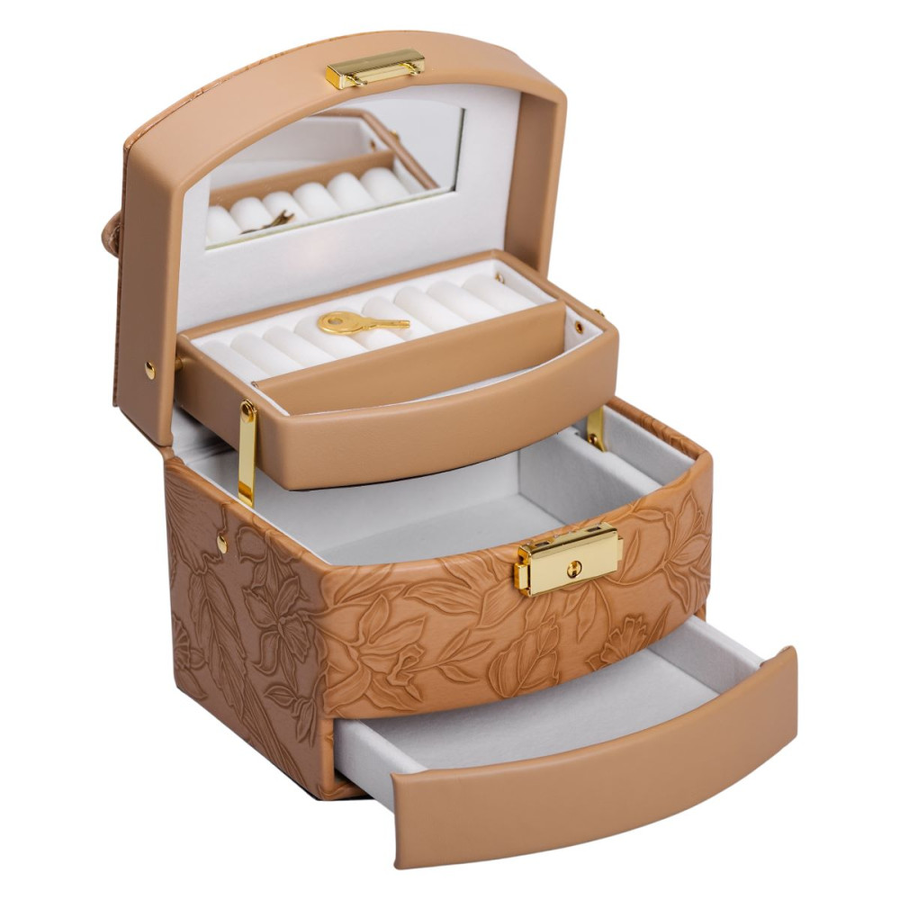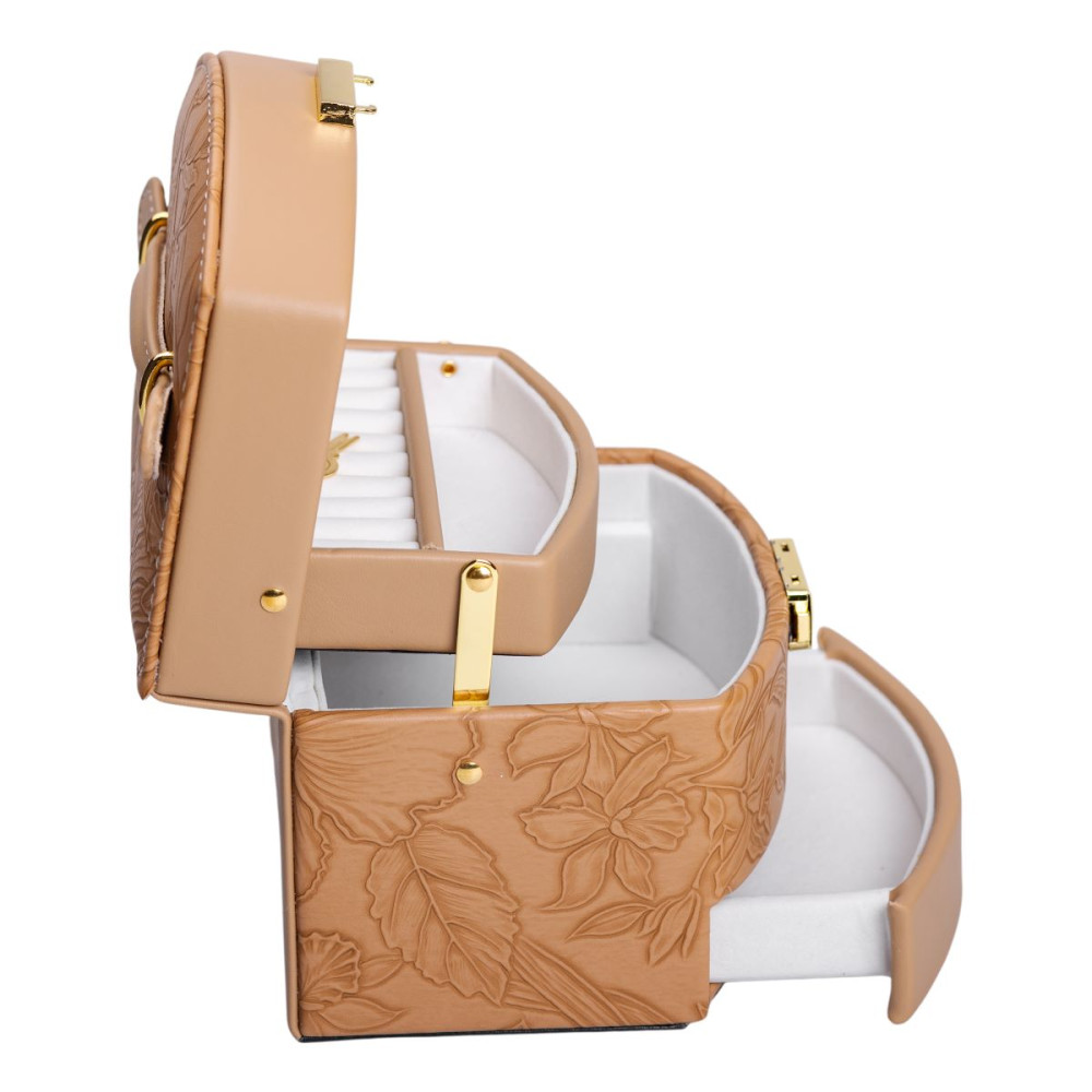 Немає відгуків про товар Шкатулка для украшений из эко кожи 3 яруса с замком органайзер для ювелирных изделий HP-5-23BR