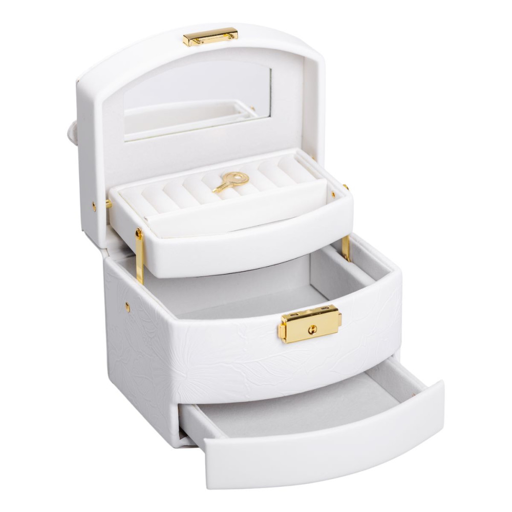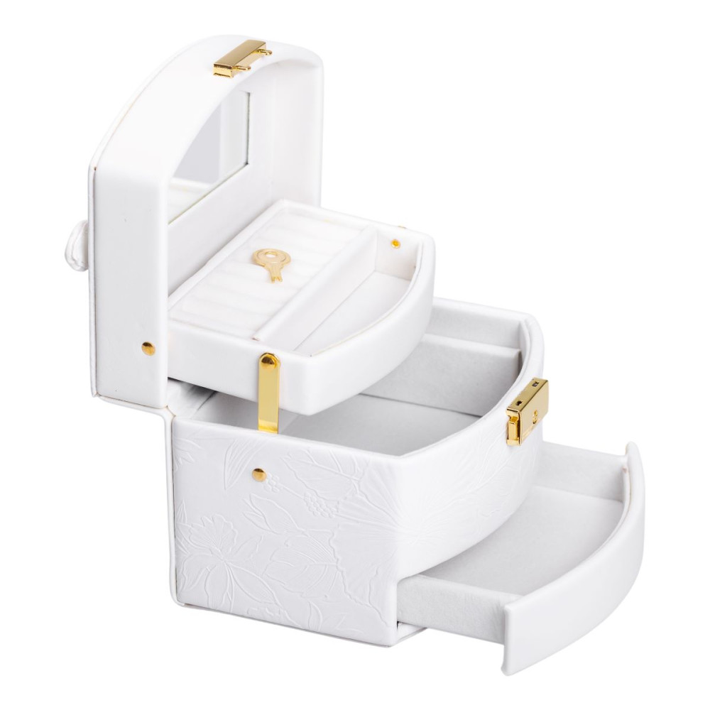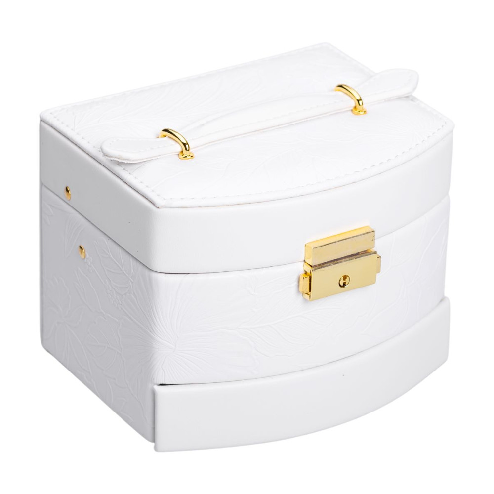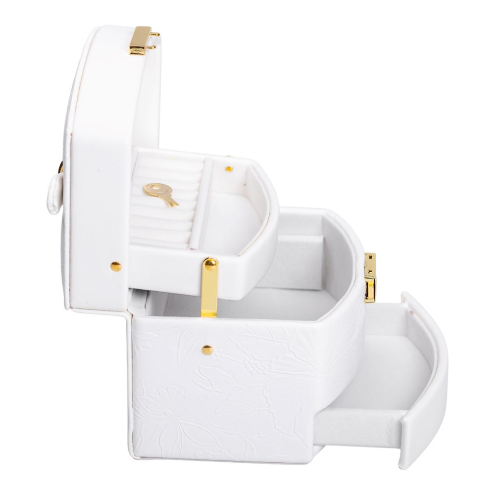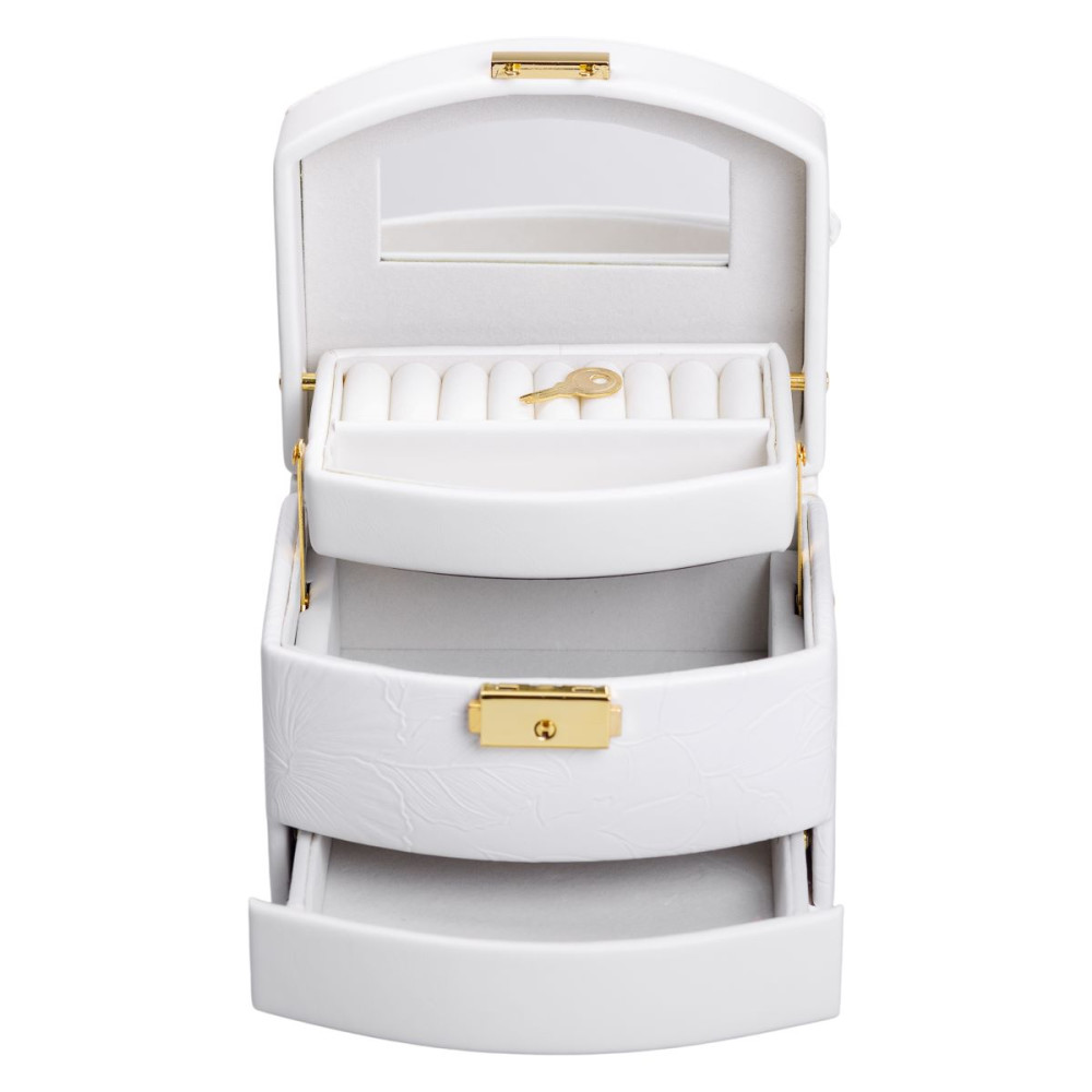 Немає відгуків про товар Шкатулка для украшений из эко кожи 3 яруса с замком органайзер для ювелирных изделий HP-5-23W