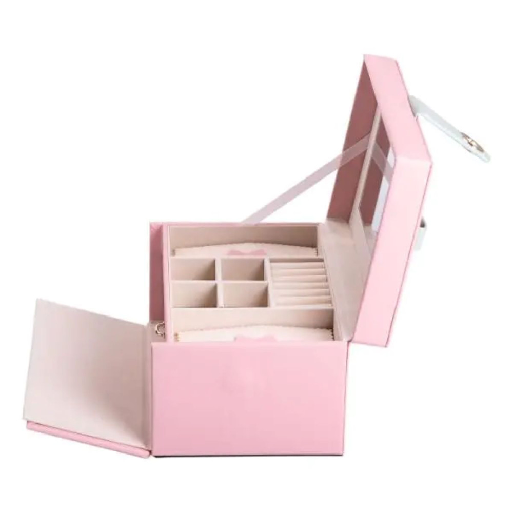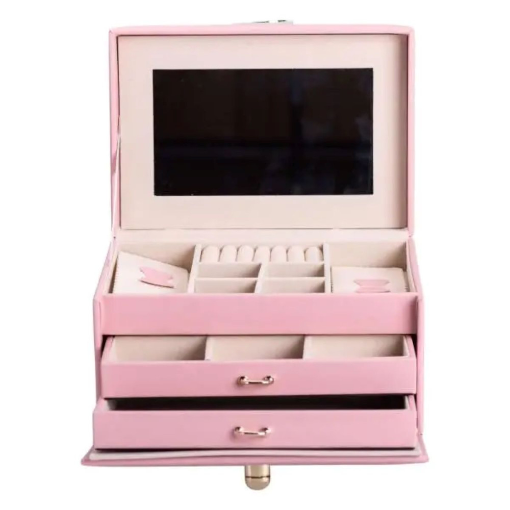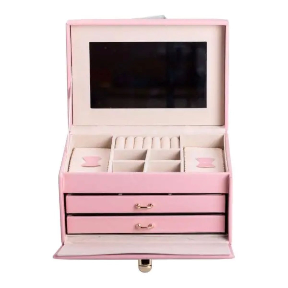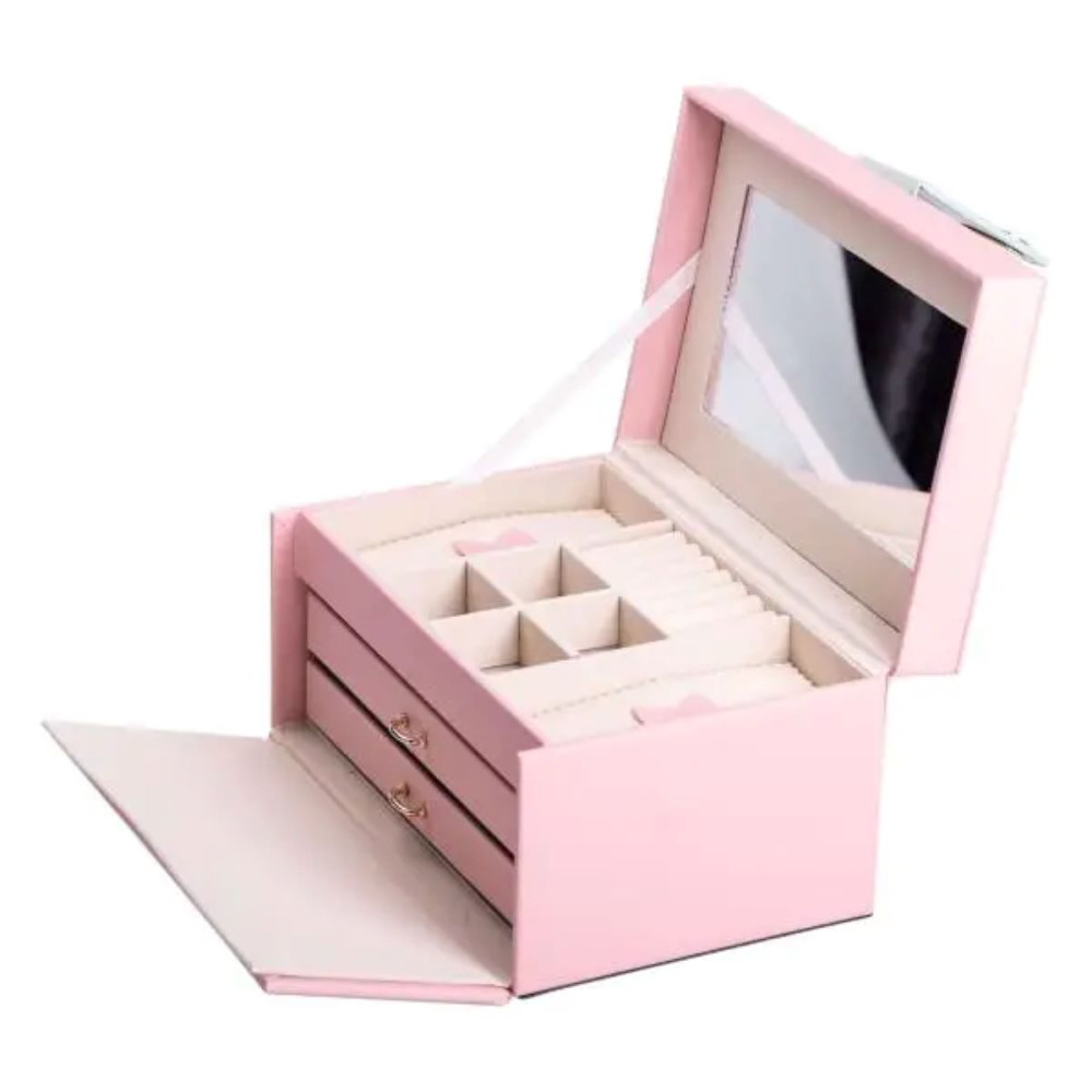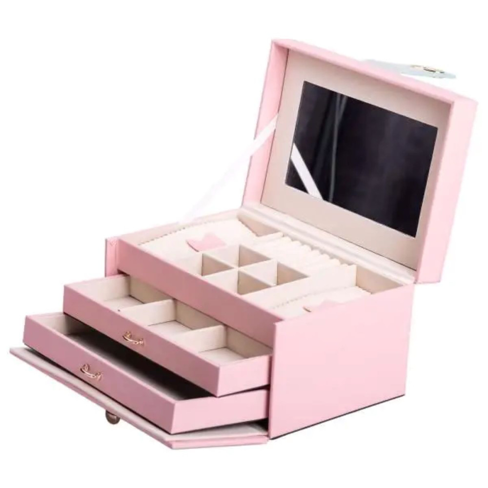 Немає відгуків про товар Шкатулка для украшений из эко кожи 3 яруса с зеркалом органайзер для ювелирных изделий HP-5-17P