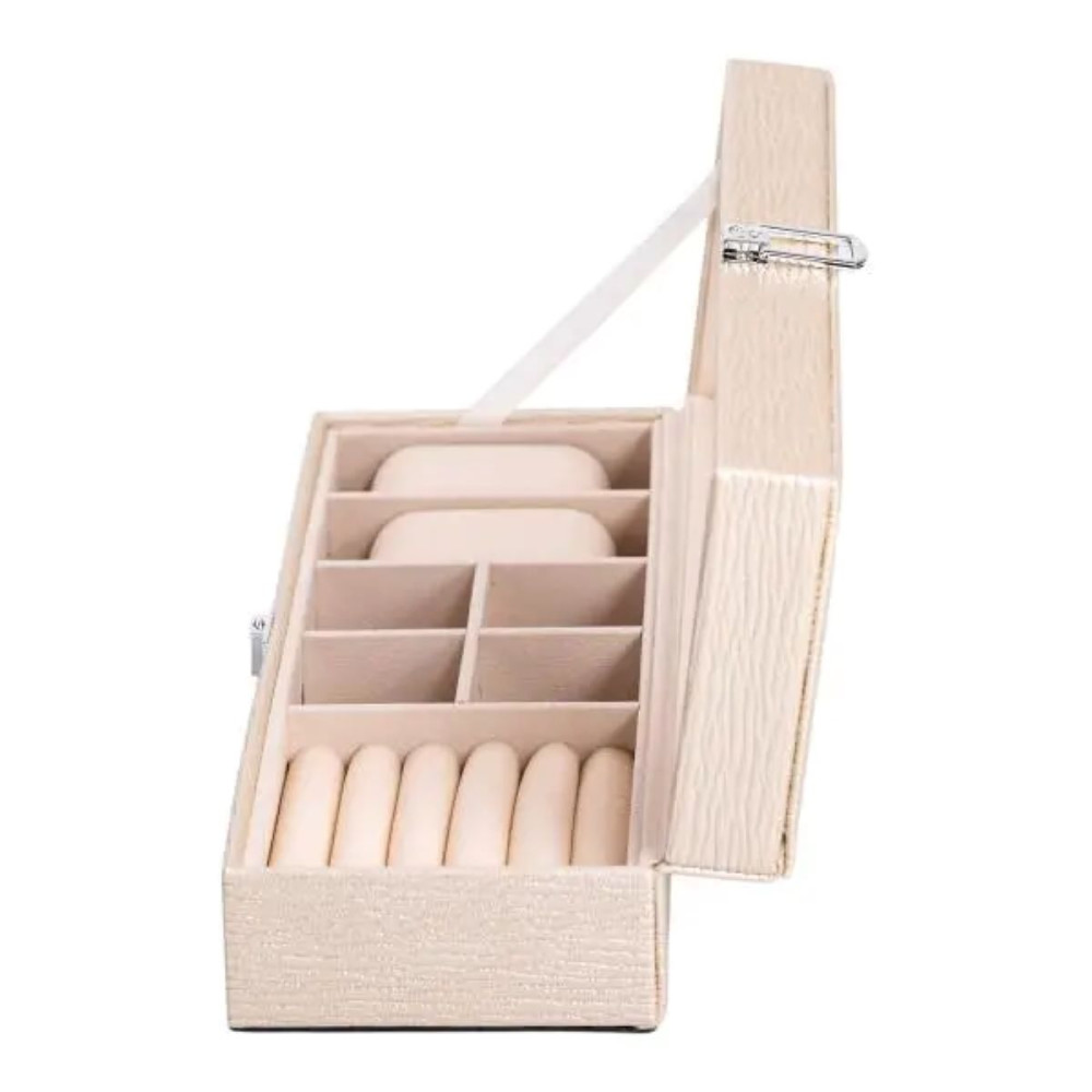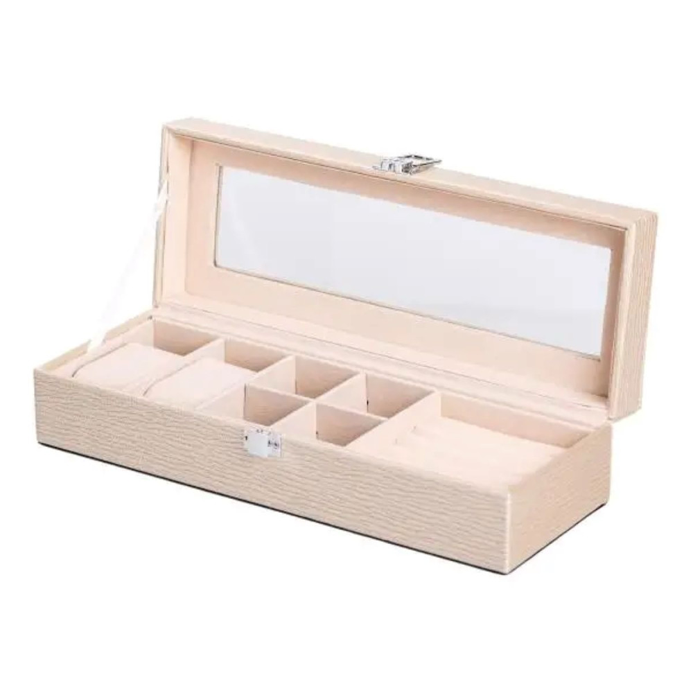 Шкатулка для украшений из эко кожи - это идеальный органайзер для бережного хранения ваших ювелирных изделий. Компактный и функциональный дизайн с размерами 31×11×8 см обеспечивает удобство использования и легкость хранения. Выполненная из качественной эко кожи, эта шкатулка станет стильным дополнением любого интерьера, сочетая в себе практичность и элегантность. Основные характеристики органайзера для хранения бижутерии размеры шкатулки для украшений 31×11×8 см; количество ярусов - 1 шт; количество отсеков - 7 шт; материал корпуса - экокожа; внутреннее покрытие - замша. Шкатулка оборудована 7 разнообразными отсеками. Это позволяет аккуратно разместить кольца, серьги, цепочки, браслеты и другие украшения, предотвращая их повреждения и спутывание. Внутреннее покрытие из мягкого замша обеспечивает дополнительную защиту от царапин и повреждений. Основные преимущества шкатулки для украшений из эко-кожи Экологичная кожа приятна на ощупь, долговечна и устойчива к внешним повреждениям, а замшевое покрытие внутри бережно хранит драгоценности и предотвращает появление царапин. Благодаря 7 отдельным отсекам, все украшения аккуратно размещены и всегда находятся под рукой. Современное исполнение и сдержанные цвета органично вписываются в любой интерьер, превращая органайзер в стильный элемент декора. Качественная застежка обеспечивает сохранность и защиту ювелирных изделий от случайного открытия и потери. Отличное решение для подарка по любому поводу: День рождения, 8 марта, годовщина, День святого Валентина или Новый год. Надежная застежка гарантирует безопасное хранение ваших драгоценностей, исключая случайное открытие шкатулки. Шкатулка из эко кожи отлично подходит в качестве подарка на любой праздник, а также будет полезным приобретением для личного использования. Купить шкатулку для ювелирных изделий можно с доставкой по всей Украине.