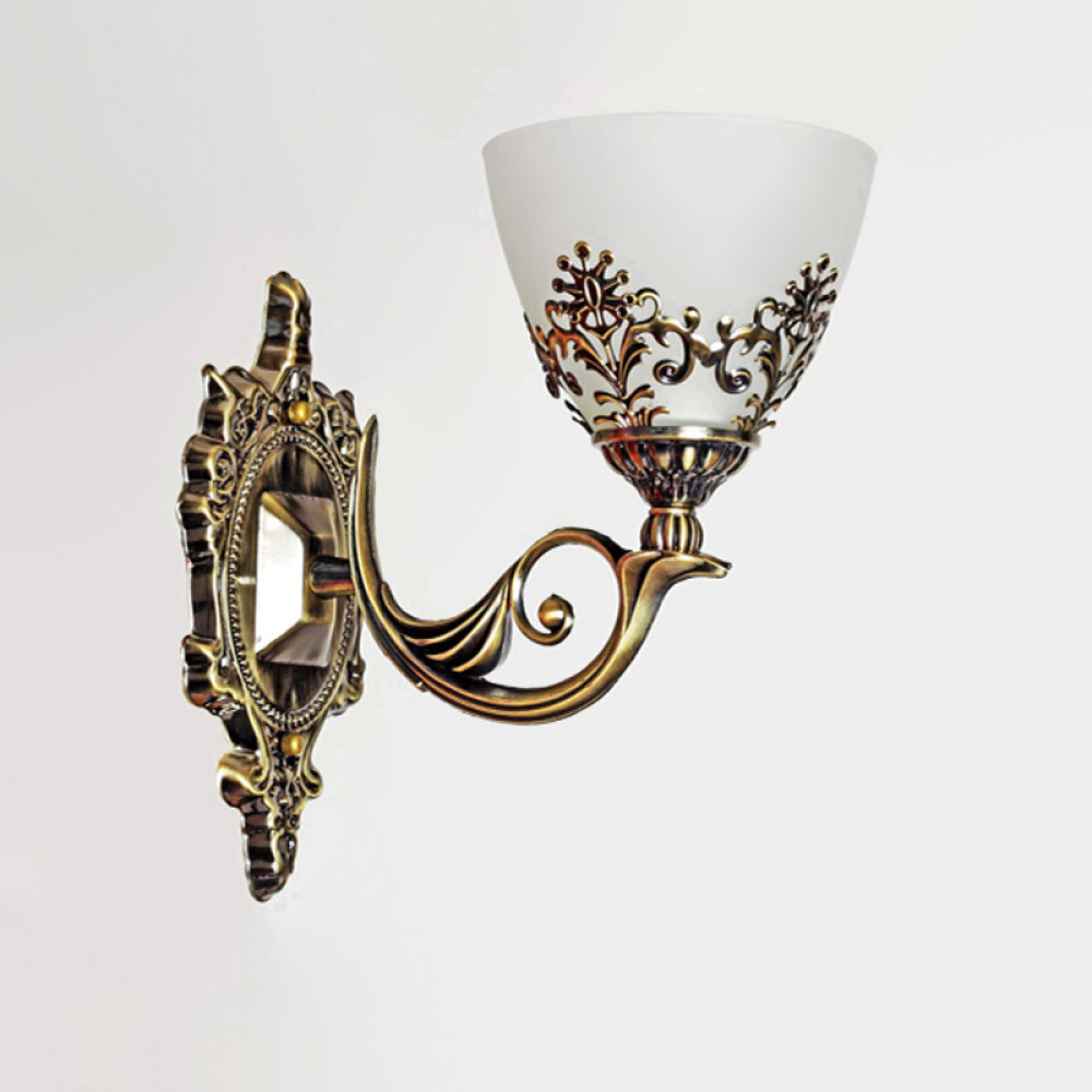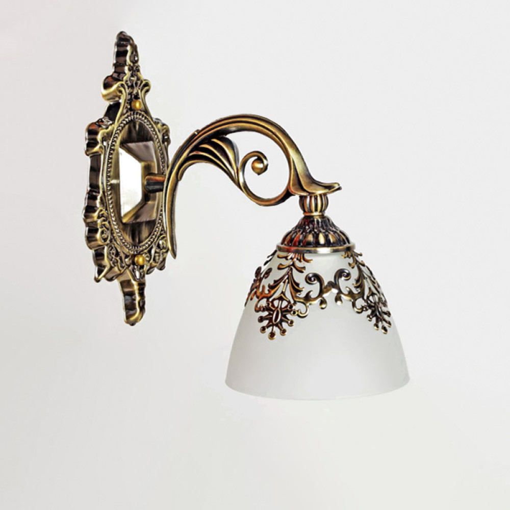 Настінний світильник бра на одну лампу у класичному стилі. Плафон скло.