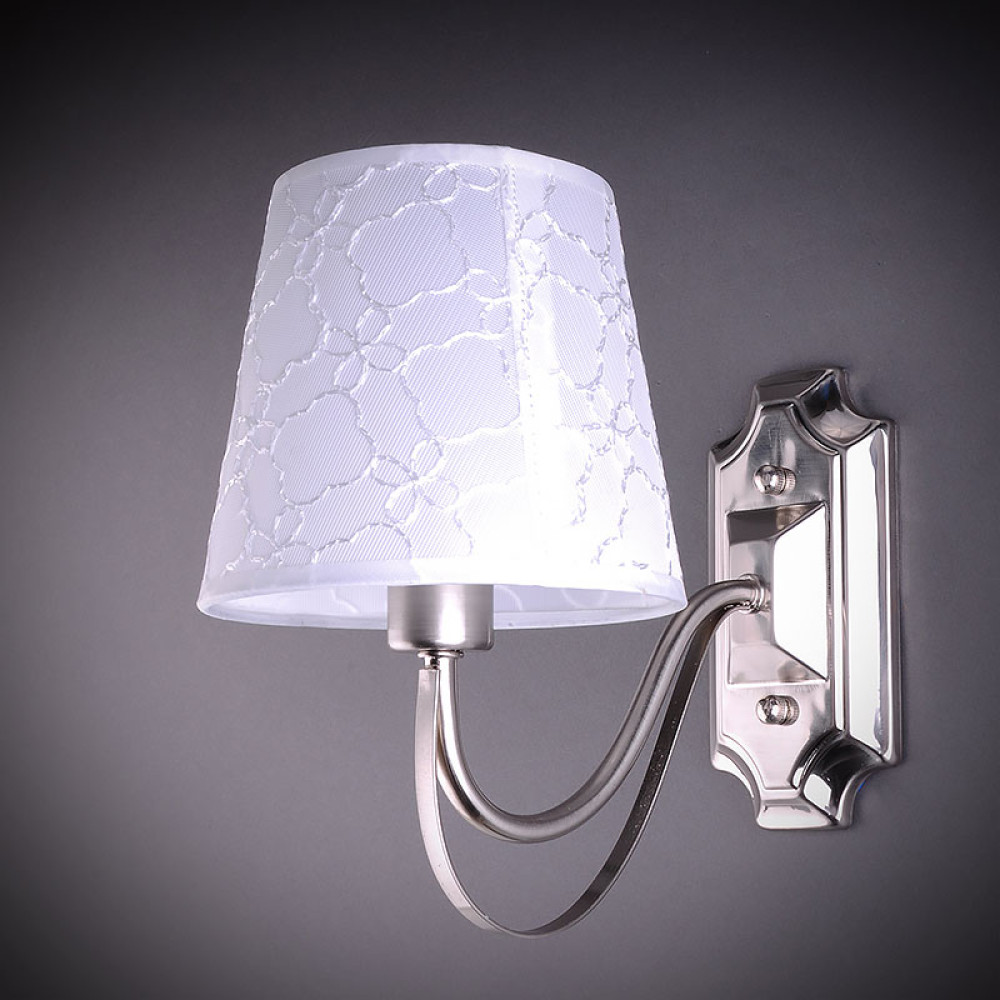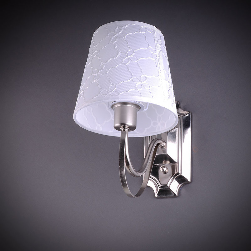 Настінний світильник бра на одну лампу з білим абажуром.