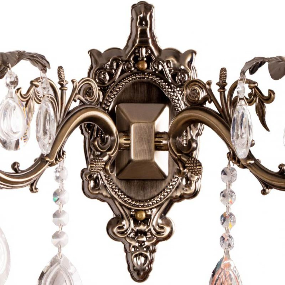 Бра на дві лампи в класичному стилі у вигляді свічника з кришталевим декором.