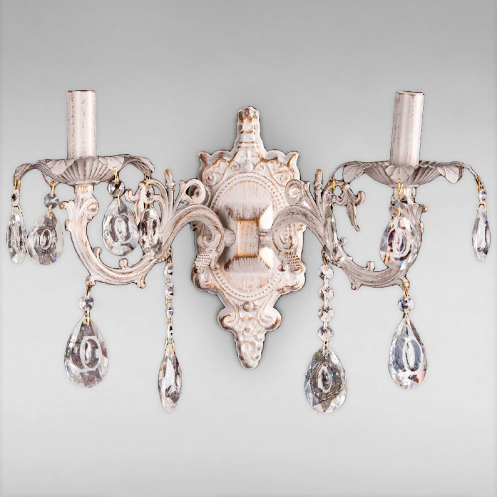 Бра на дві лампи в класичному стилі у вигляді свічника з кришталевим декором.