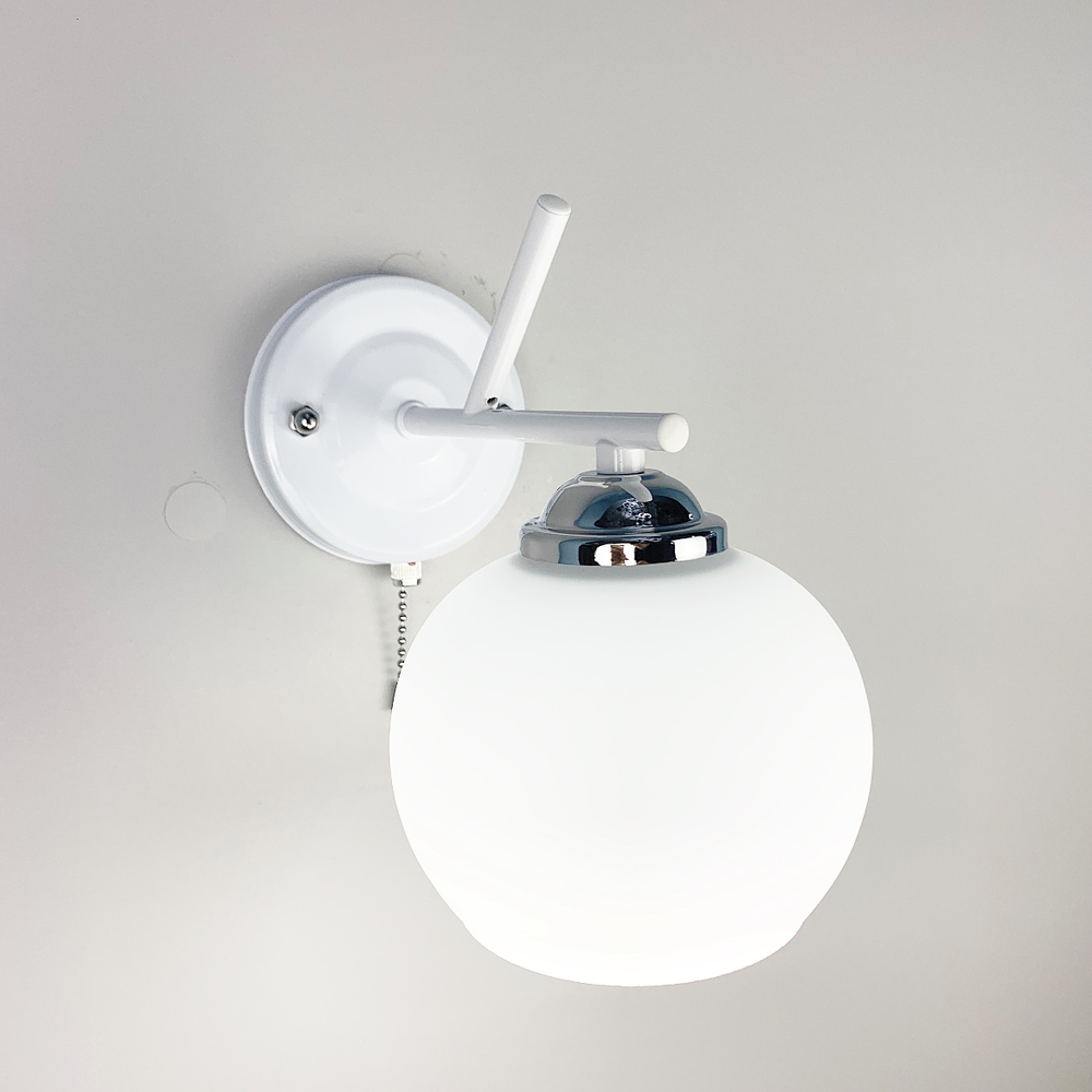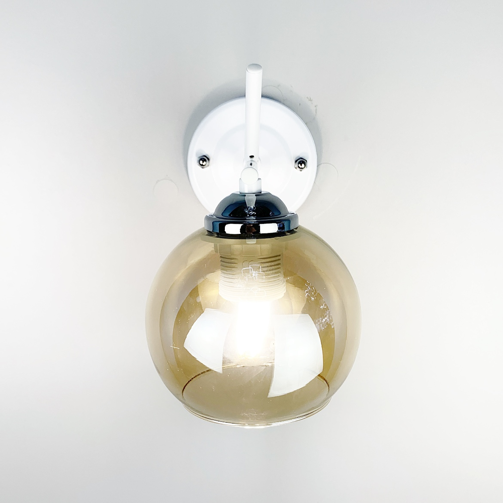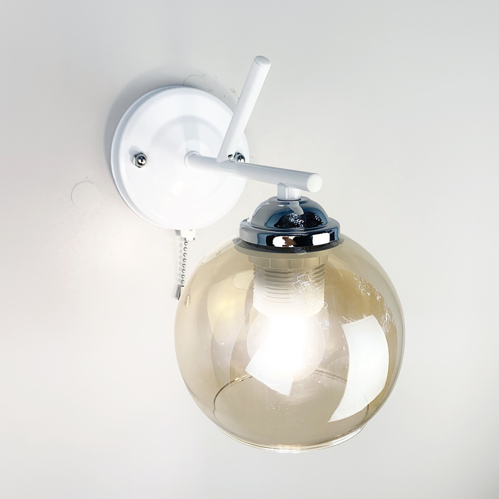 Бра в білому кольорі з вимикачем з трьома варіантами плафонів - білий матовий, графіт або янтар