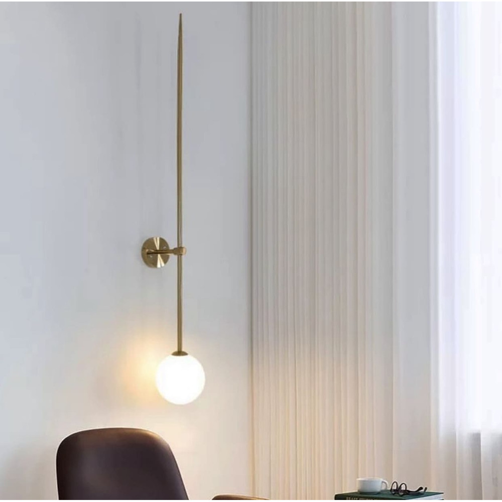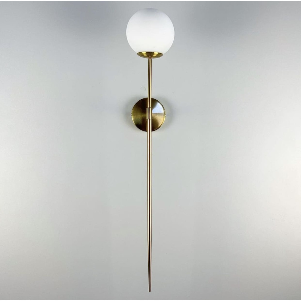 Мінімалістичний настінний світильник в елегантному видовженому корпусі кольору латунь з білим матовим плафоном