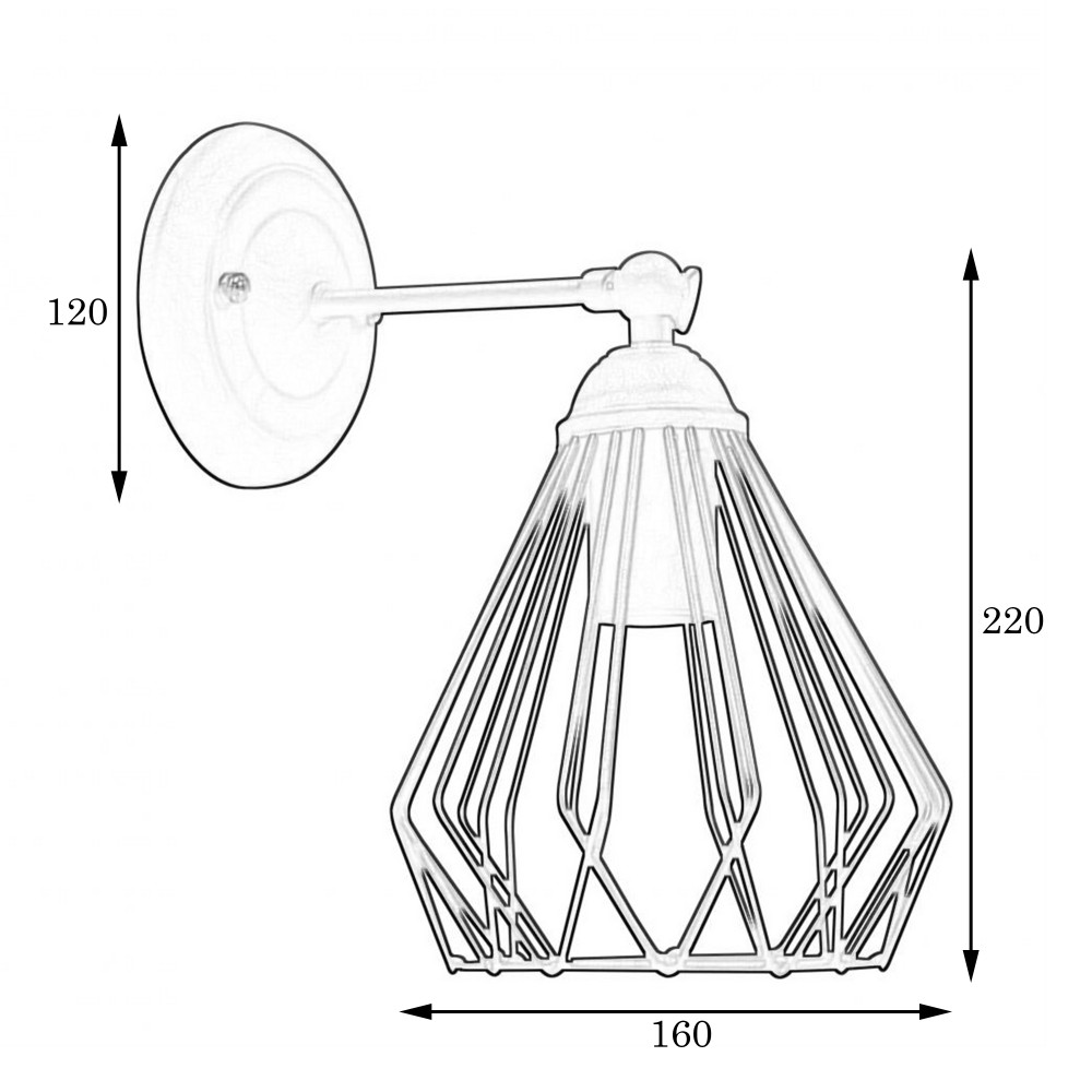 Настінний світильник Бра на одну лампу в сучасному стилі із плафоном у вигляді металевого каркасу конусної форми з поворотним механізмом.