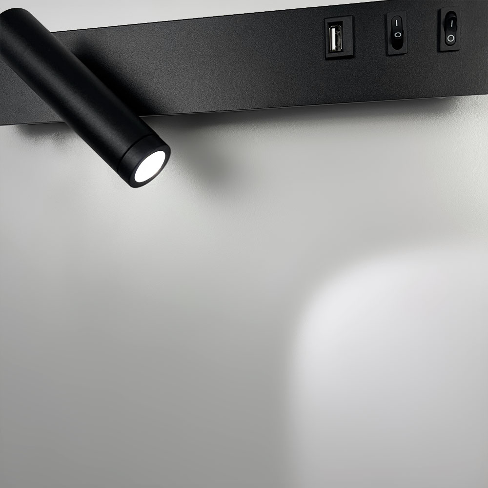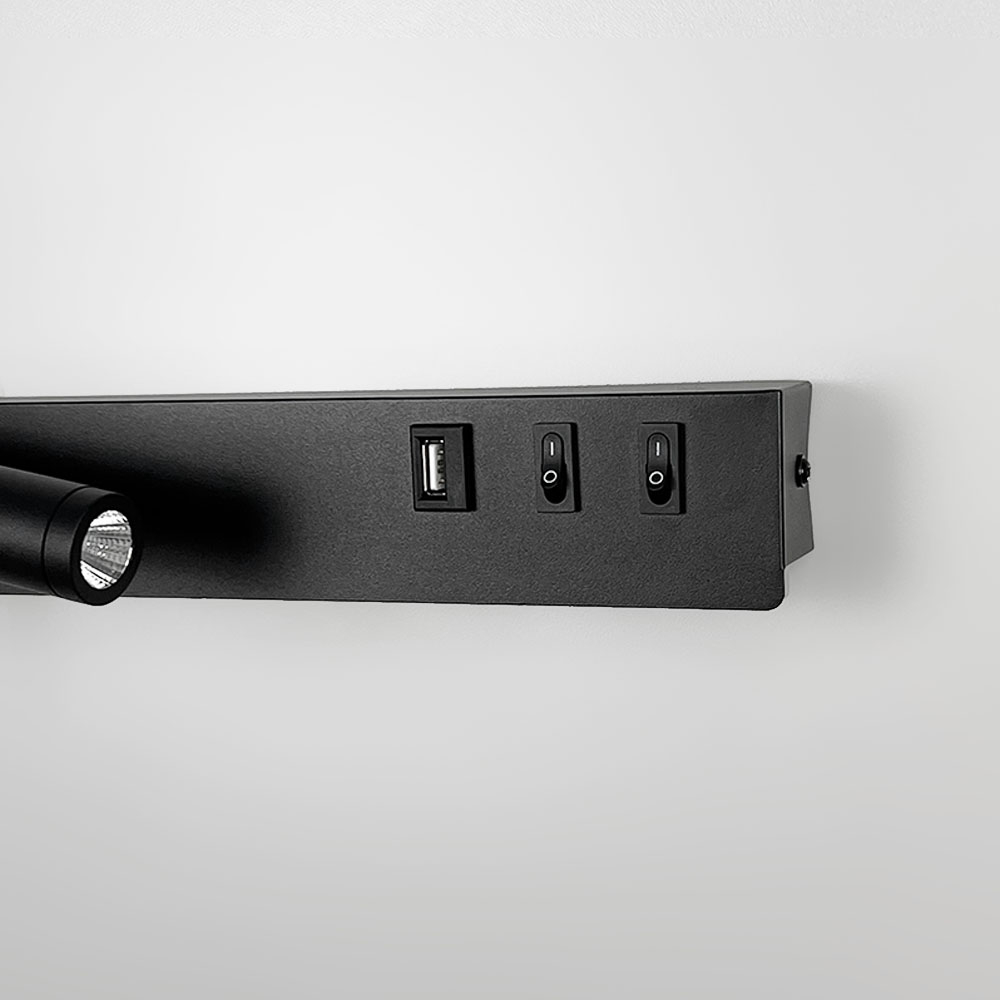 Немає відгуків про товар Чорне бра з поворотним спотом зліва + розʼєм USB
