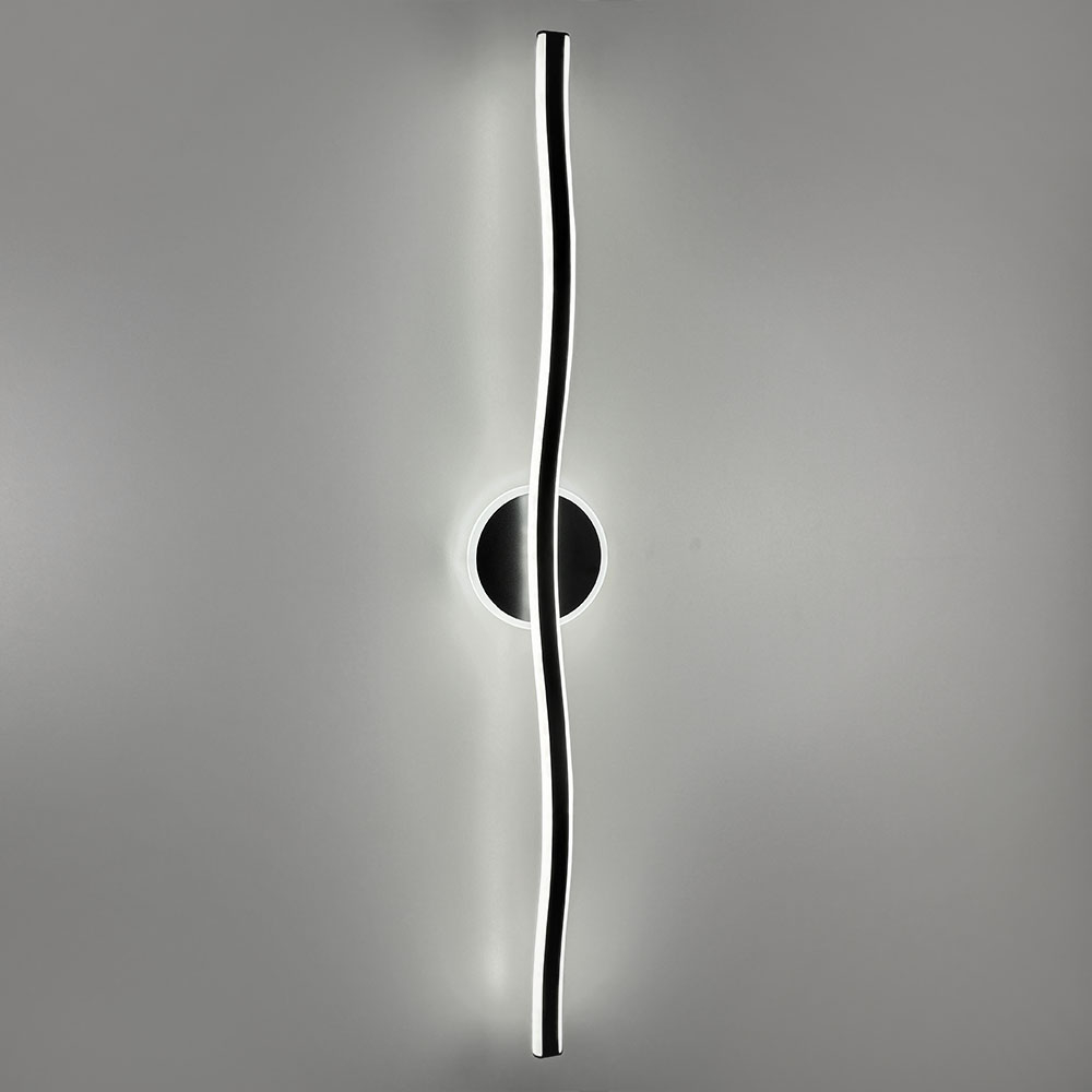 Сучасні лінійні бра, які не лише виконують функцію освітлення, але і є стильним елементом інтер’єру. Металева конструкція бра складається із круглої стінової основи та довгої вигнутої планки у хвилеподібній формі. Бра оснащені вбудованими світлодіодами, які розташовані під розсіювачем вздовж всієї довжини (основи та планки) і випромінюють нейтральне світло з температурою 4000К. Модель доступна у 2-х варіантах кольору корпусу: чорний та латунь, а також у 3-х розмірах: 60 см, 80 см та 100 см. Основна перевага цих бра полягає в можливості встановлення під потрібним кутом - горизонтально або вертикально.