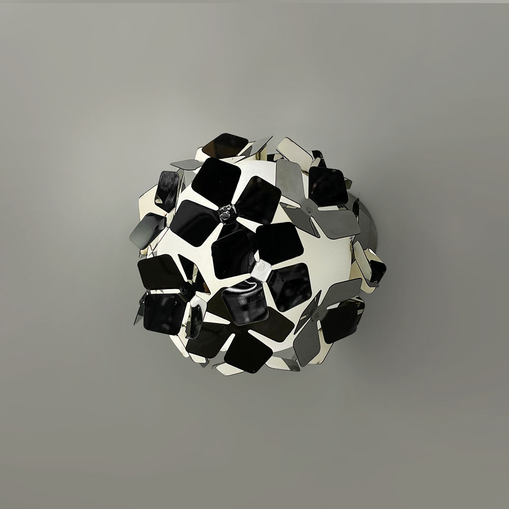 Бра у флористичних мотивах, дизайн якого нагадує світловий шар оповитий металевими квітами гортензії. Діаметр - 13 см, відступ від стіни - 16 см. Нова колекція флористичних бра представлена у двох кольорах корпусу (латунь та хром) і включає дві варіації дизайну: у вигляді кулі та у вигляді кулі на металевій основі Вони гармонійно доповнять простір та стануть акцентними деталями інтер'єру.