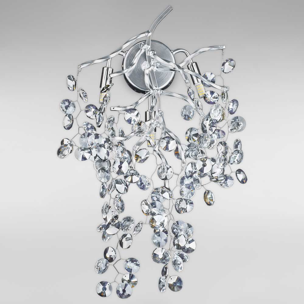 Декоративний, настінний, кришталевий світильник Бра у сучасному стилі на три лампи. Форма металевого корпусу бра візуально нагадує гілку з кришталевими листочками.