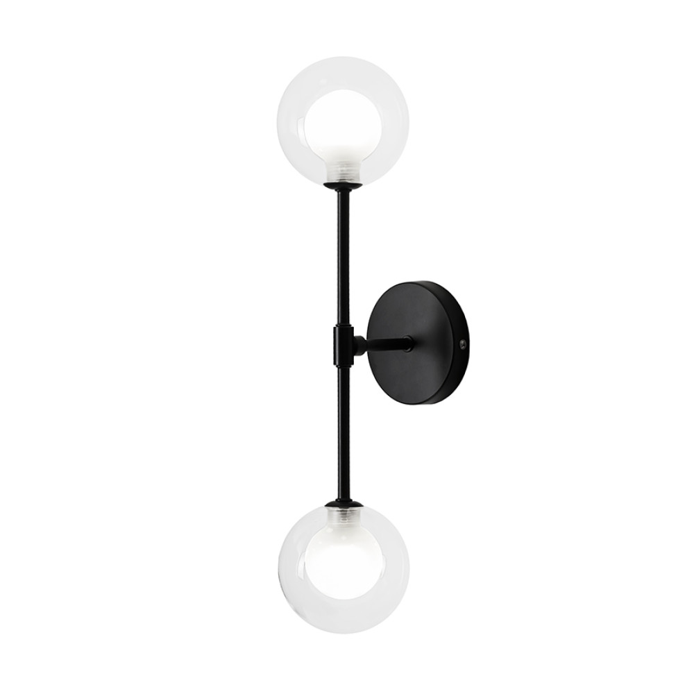 Настінний світильник Бра куля Levistella 761WT100F-2 BK+CLWH чорний, плафон прозорий з білим