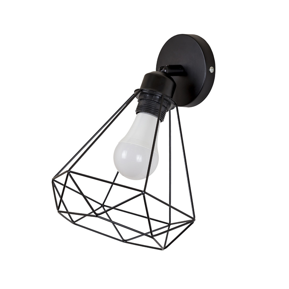 Стильний настінний світильник Бра на одну лампу з плафоном у вигляді металевої клітини конусної форми з поворотним механізмом.