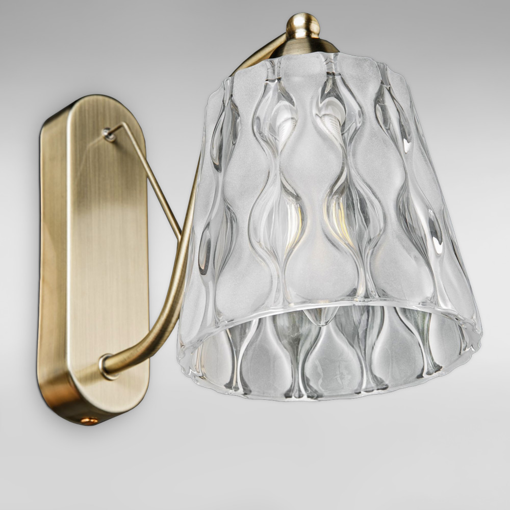 Стильний настінний світильник Бра на одну лампу зі скляним рифлений плафон.