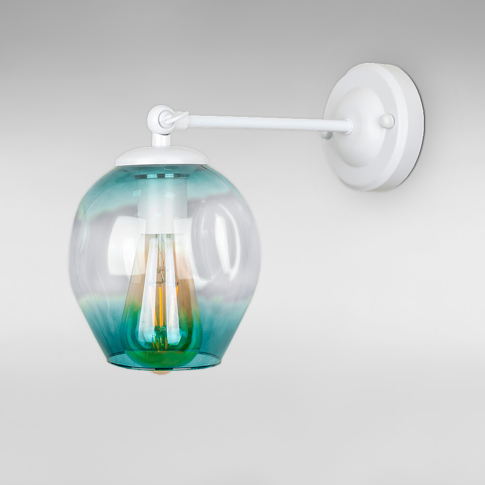 Стильний настінний світильник Бра на одну лампу зі скляним поворотним фігурним плафоном овальної форми.