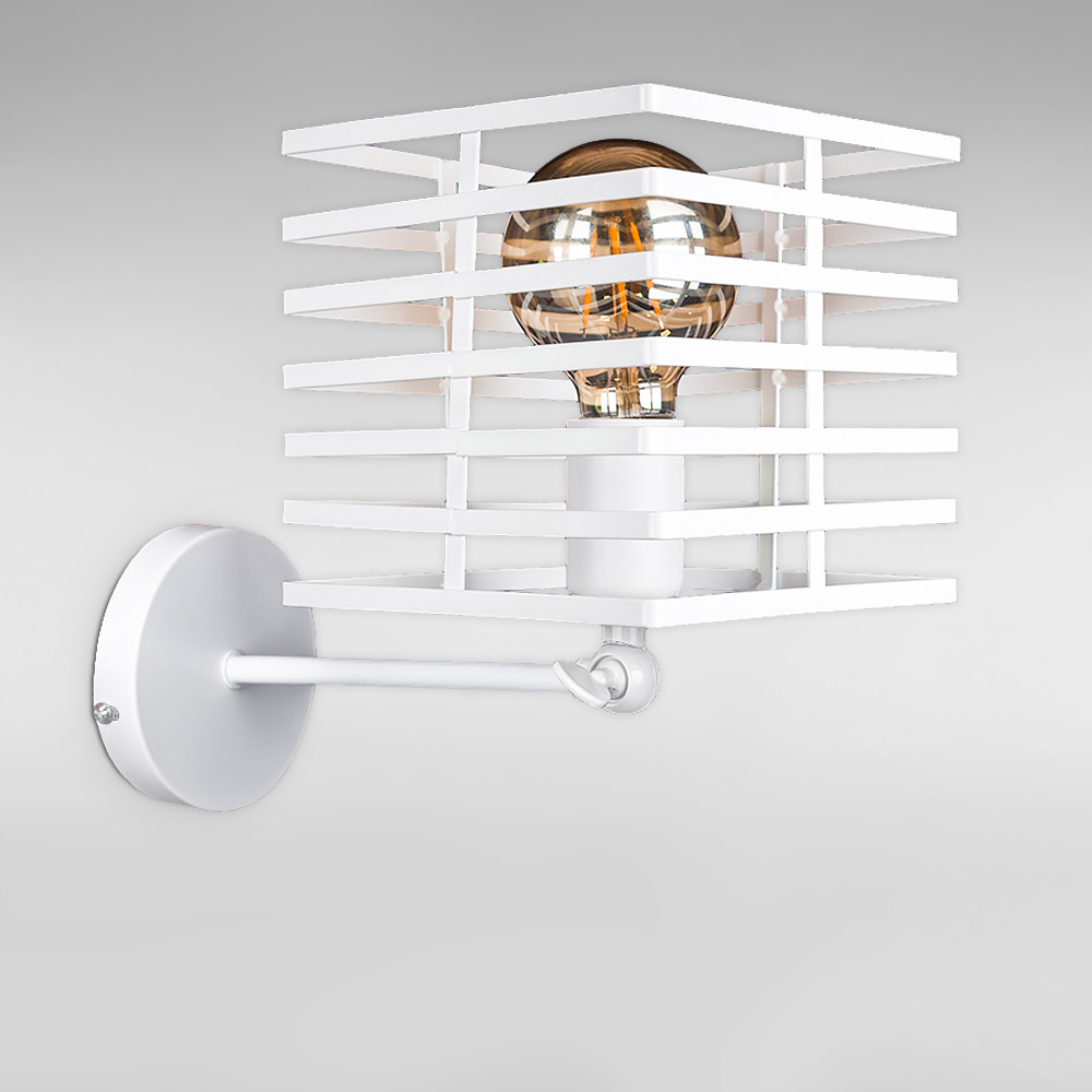 Стильний настінний світильник Бра на одну лампу з металічним плафоном у вигляді клітини з поворотним механізмом.