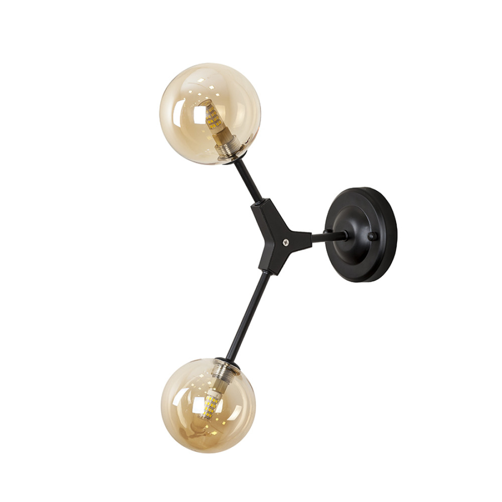 Стильний настінний світильник Бра на дві лампи зі скляними плафонами у формі кулі.
