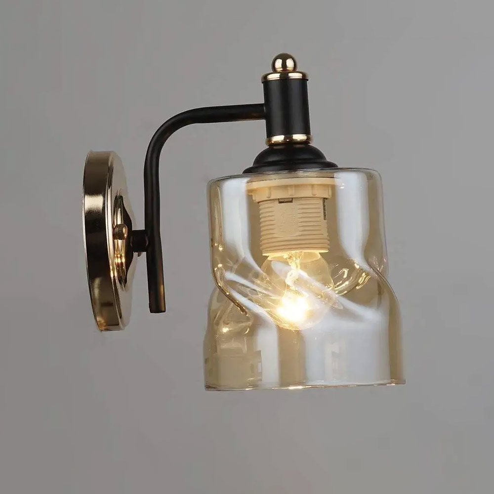 Настінний світильник Бра Light House SR-19334/1W FG+BK L170*W125*H200 чорний + золото, плафон бурштиновий