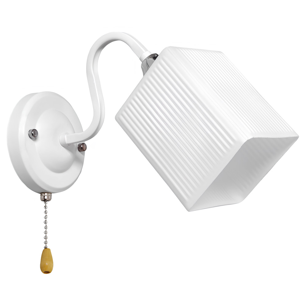 Стильний настінний світильник Бра на одну лампу зі скляним плафоном прямокутної форми і мотузковим вимикачем на корпусі.
