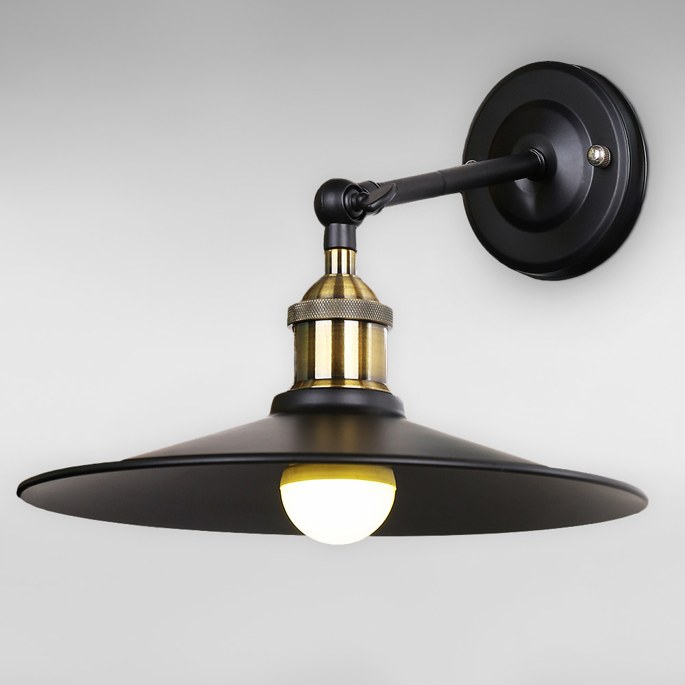Стильний настінний світильник Бра в стилі Лофт на одну лампу з плоским металевим поворотним плафоном у вигляді тарілки.