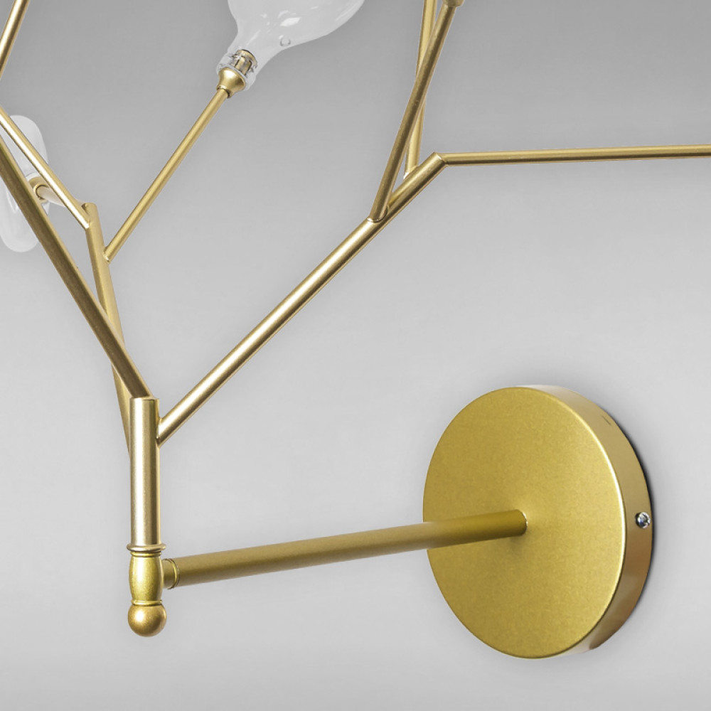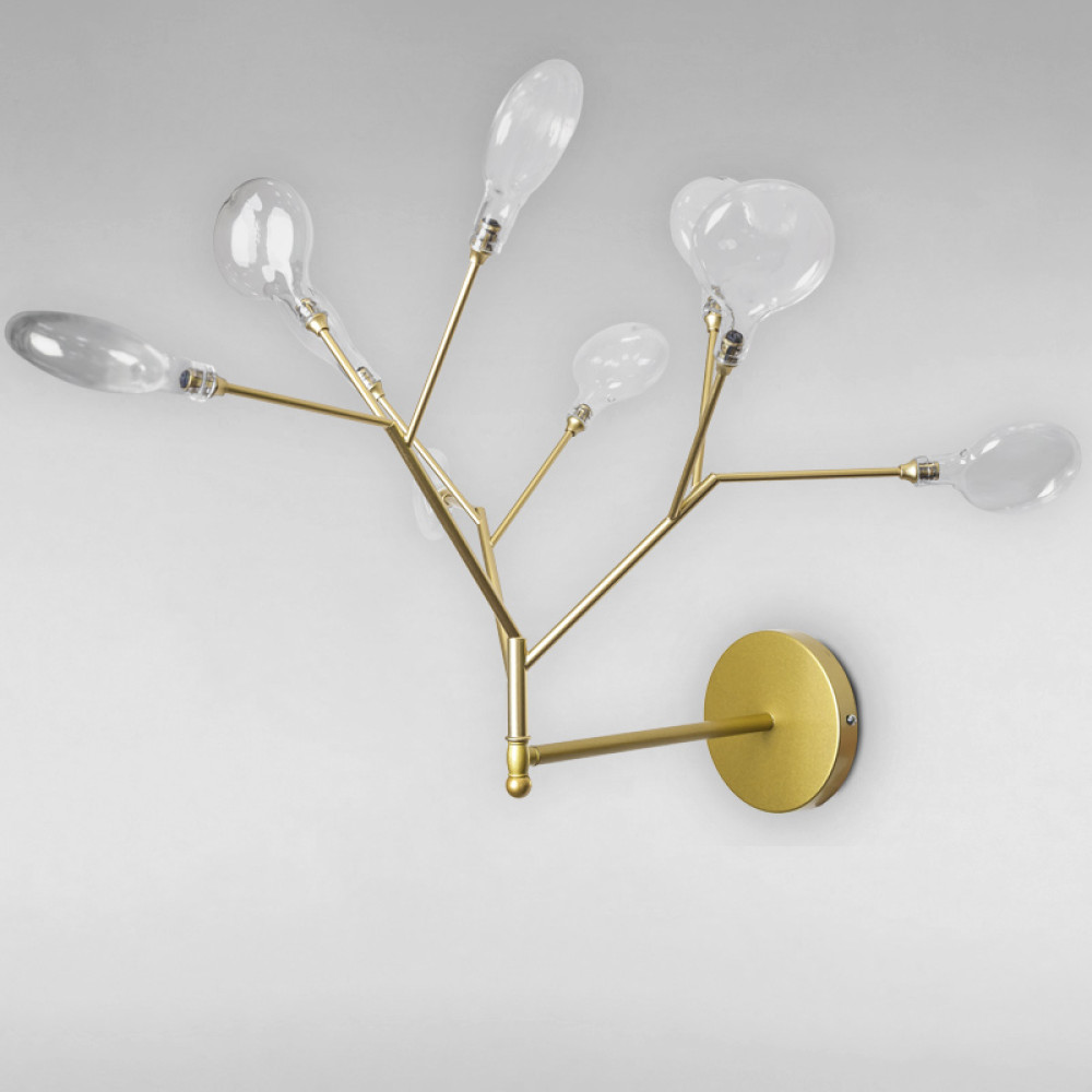 Настінний світильник бра на дев'ять ламп з плафонами у вигляді краплі і корпусом у формі гілки дерева.