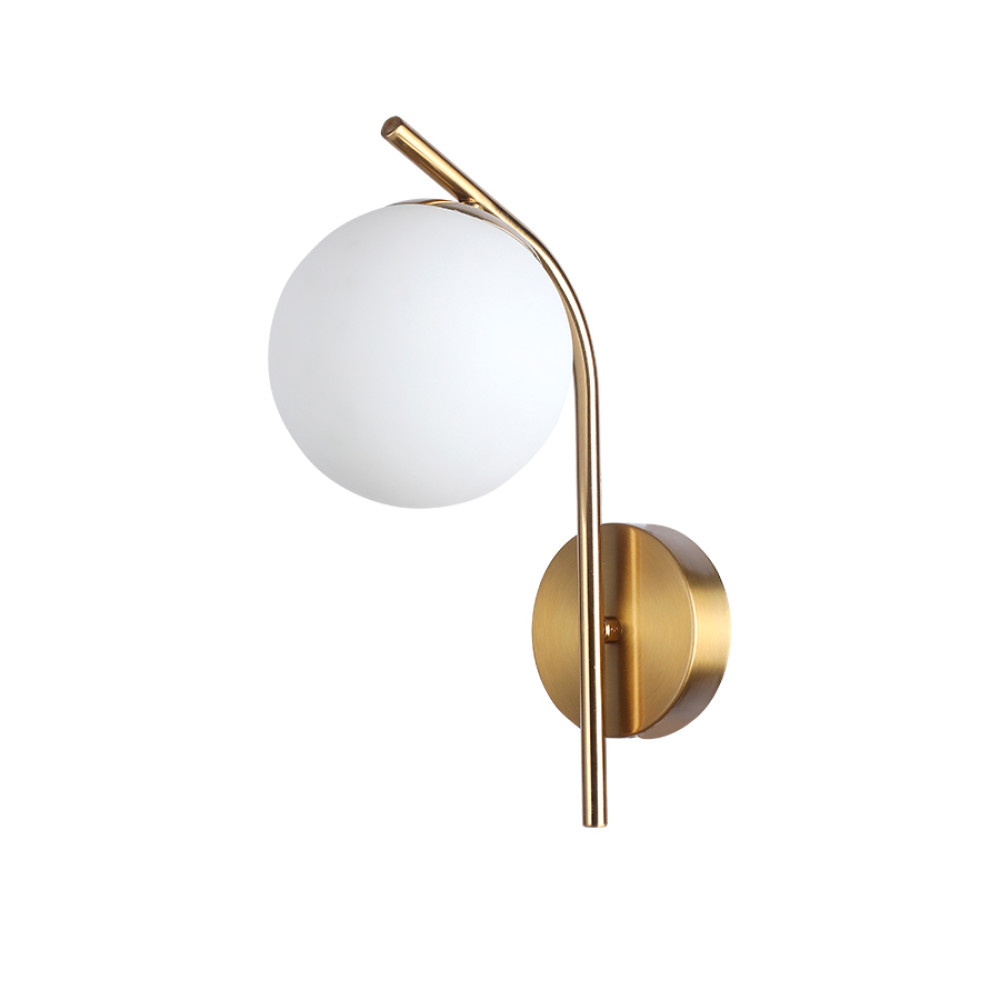 Стильний настінний світильник Бра на одну лампу зі скляним плафоном у вигляді кулі.
