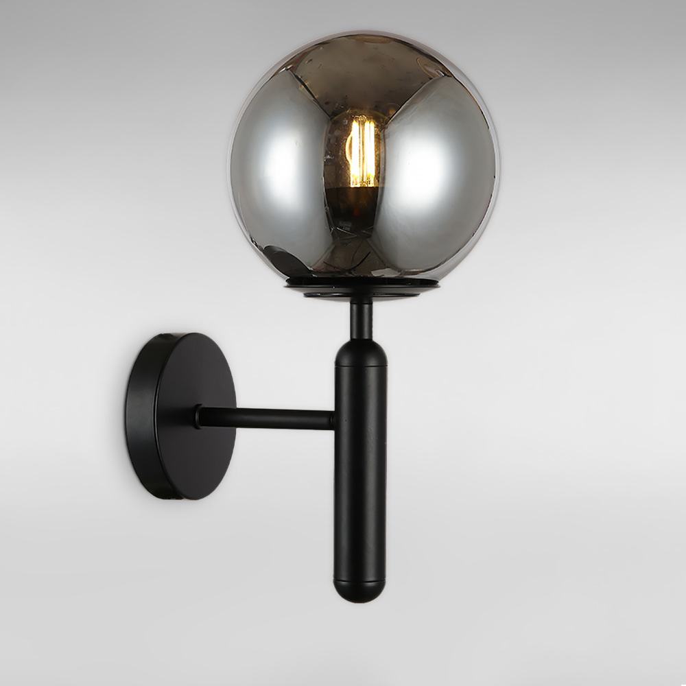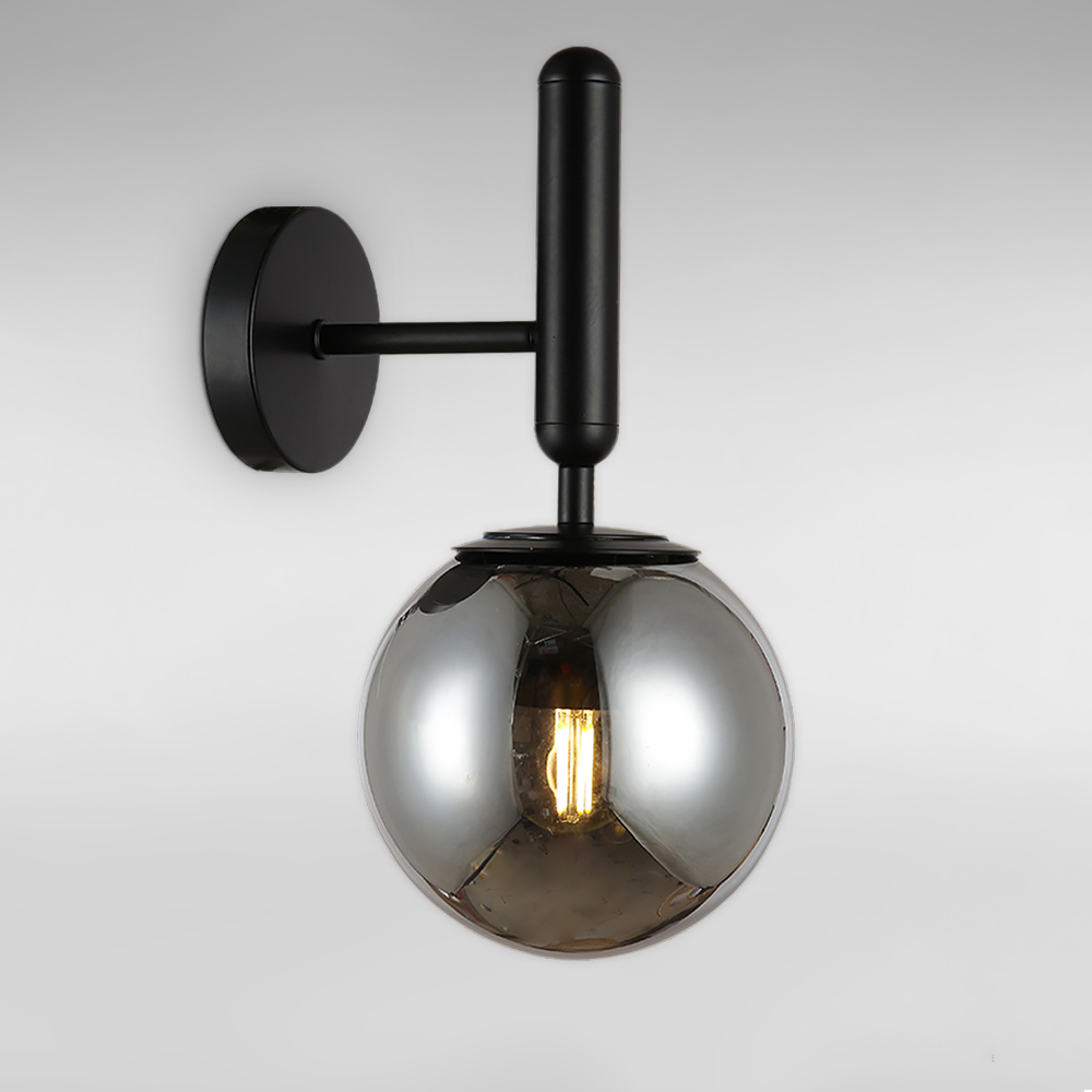 Стильний настінний світильник Бра на одну лампу зі скляним плафоном у вигляді кулі.