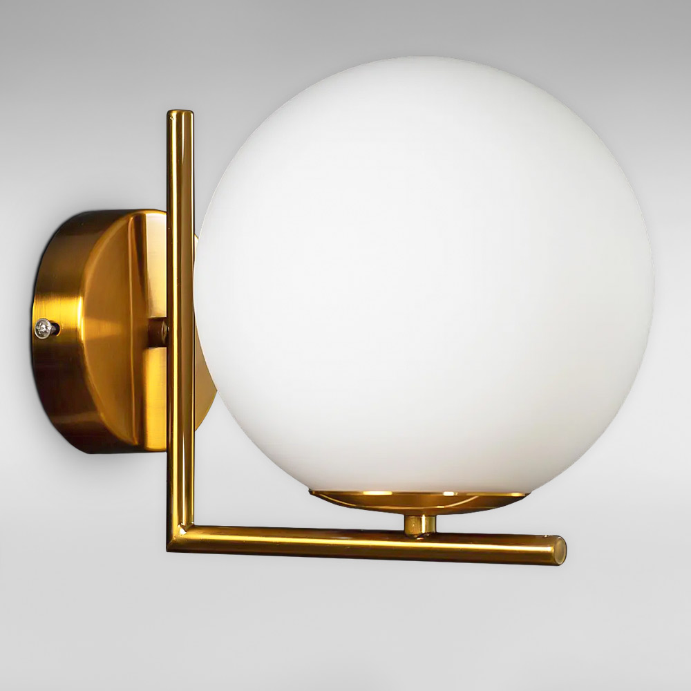 Стильний настінний світильник Бра на одну лампу зі скляним плафоном у вигляді кулі.