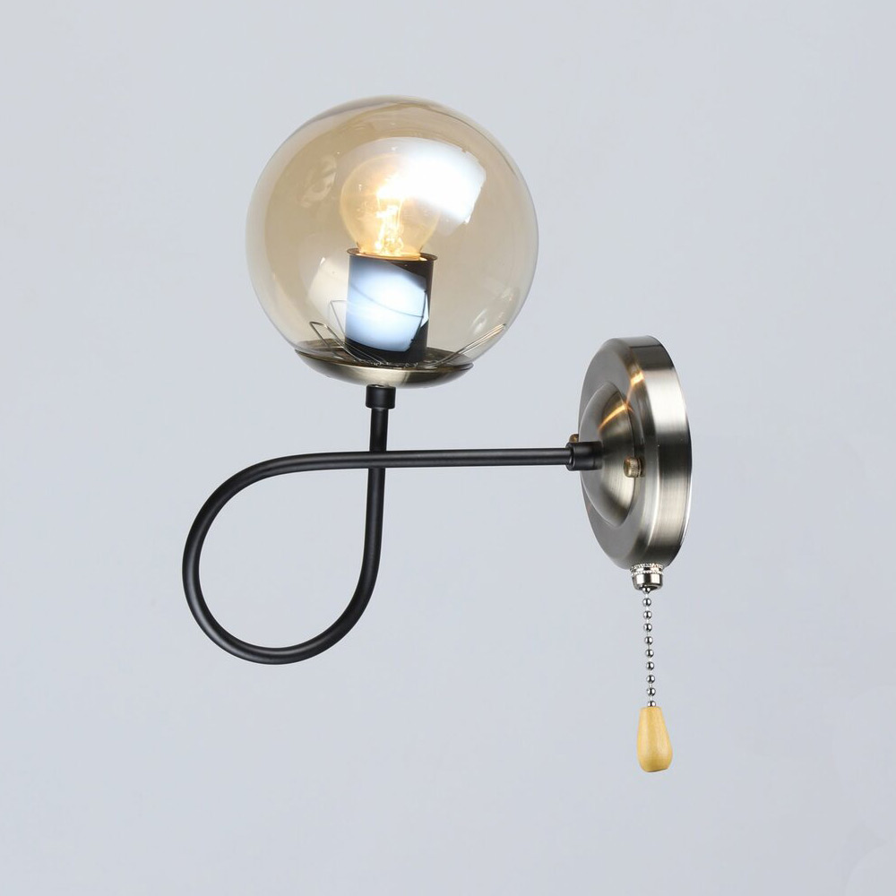 Стильний настінний світильник Бра на одну лампу зі скляним плафоном у вигляді кулі.