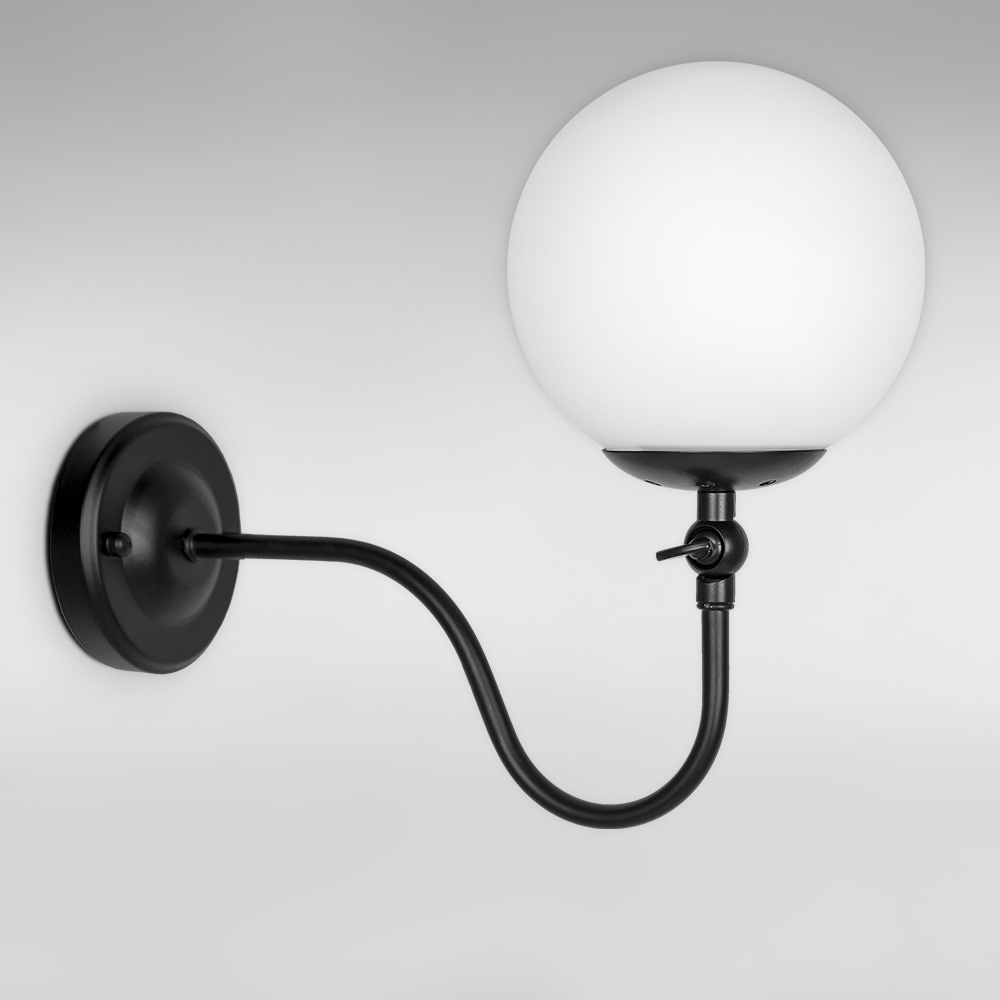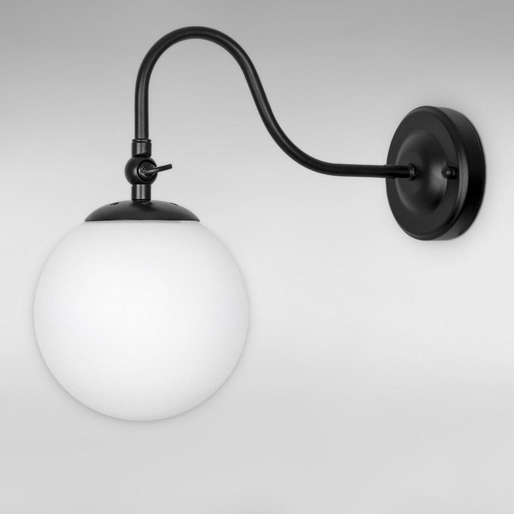 Стильний настінний світильник Бра на одну лампу зі скляним плафоном у вигляді кулі і поворотним механізмом.