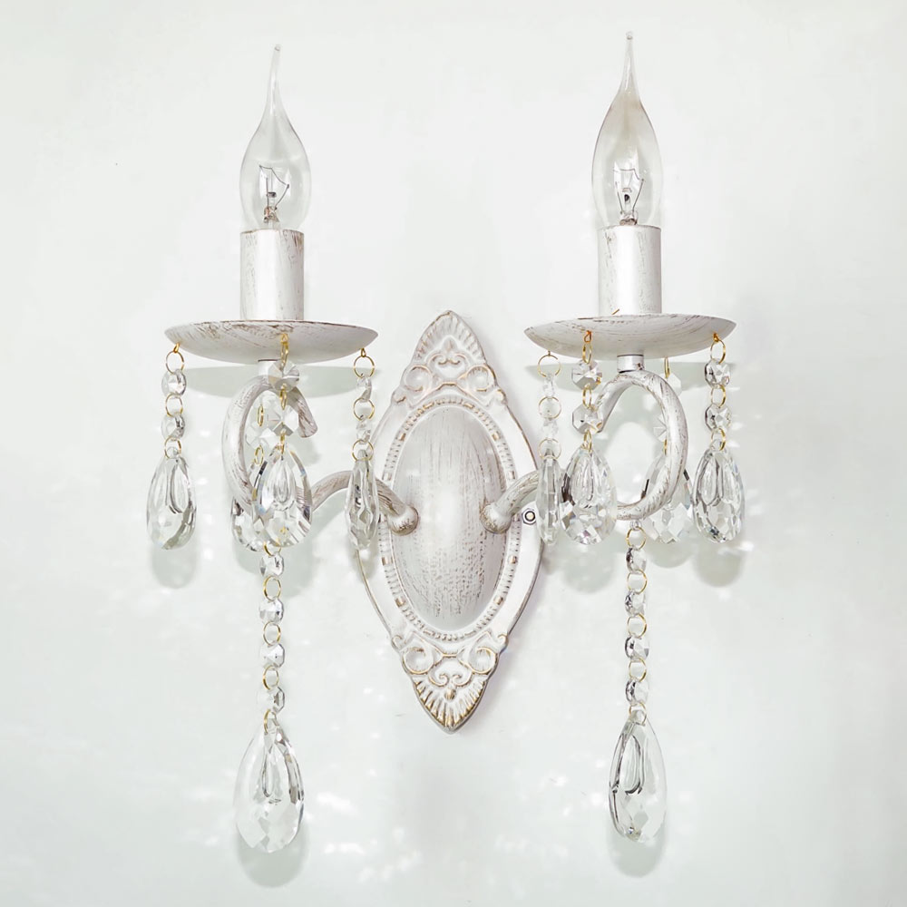 Декоративний настінний світильник бра у вигляді свічника на дві лампи свічки з кришталевими підвісками. Виконаний у класичному стилі.