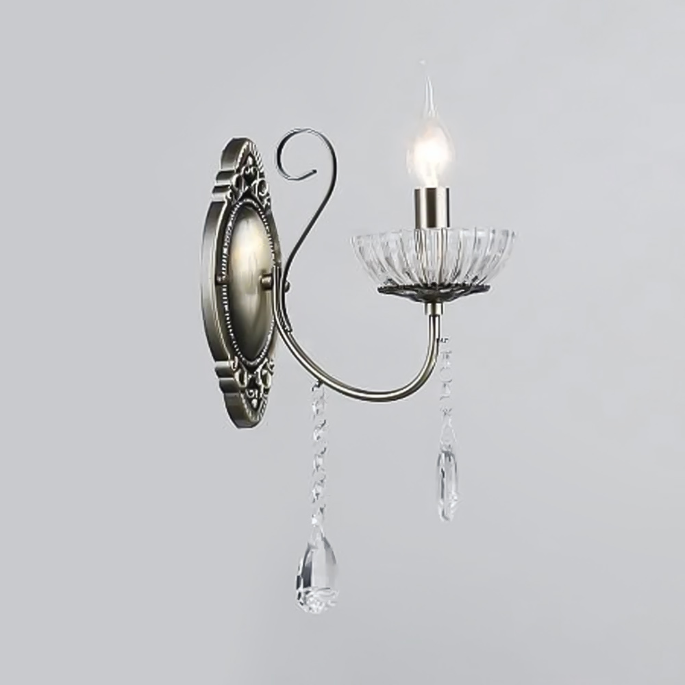 Настінний світильник бра на одну лампу у вигляді свічника у класичному стилі з підвісками.