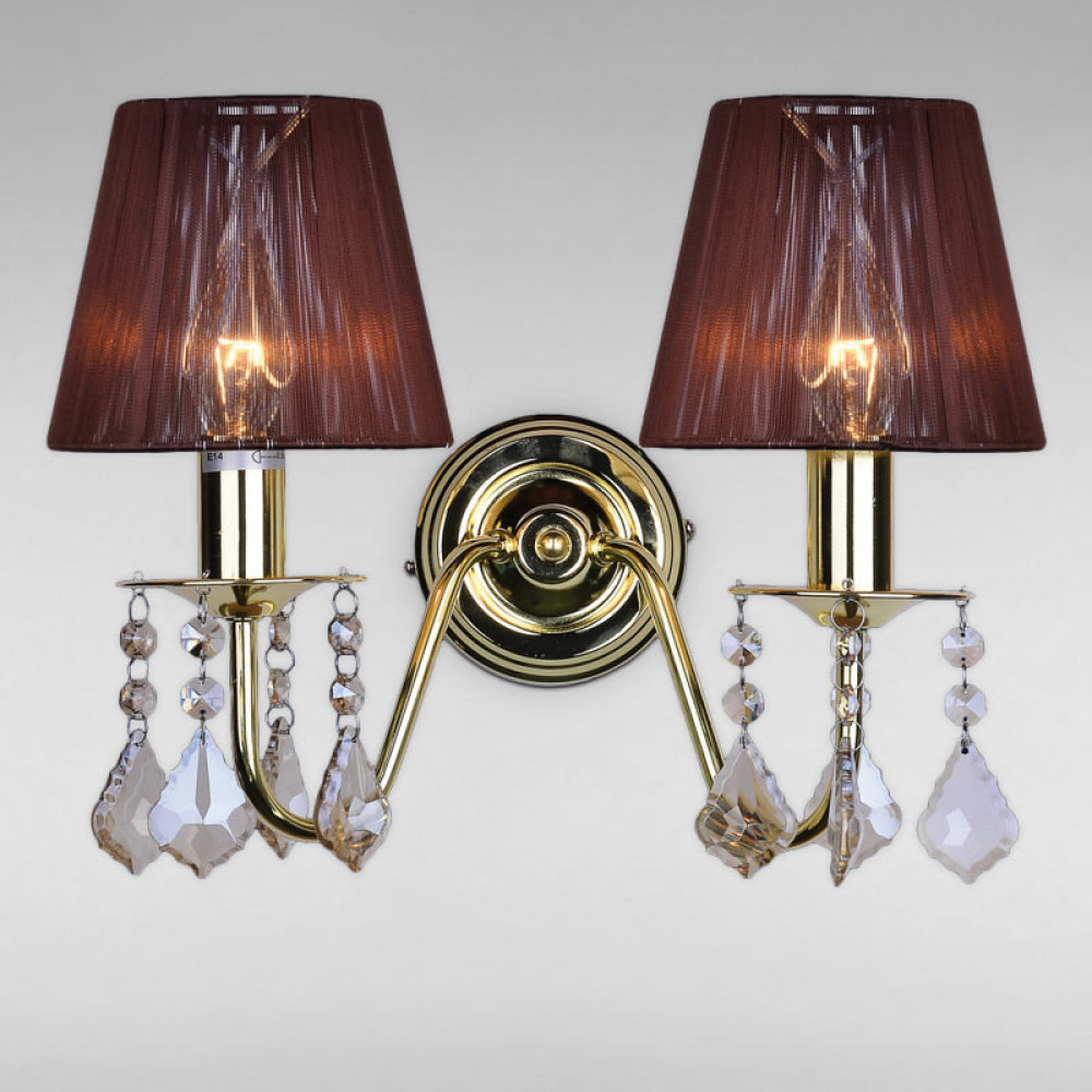 Настінний світильник Бра з абажуром Light House LS-18125GD-2 GD BROWN золото плафон коричневий
