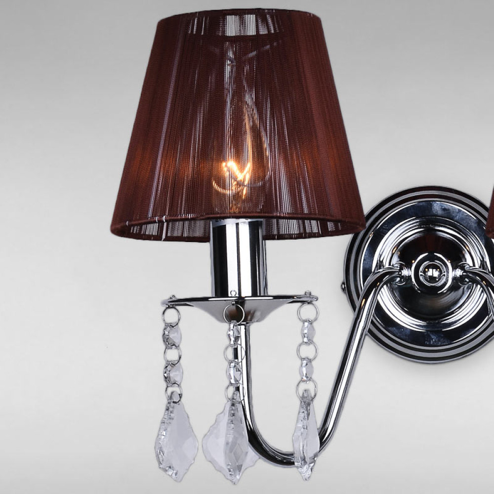 Настінний світильник Бра з абажуром Light House LS-18125WH-2 WH BROWN чорний хром плафон коричневий