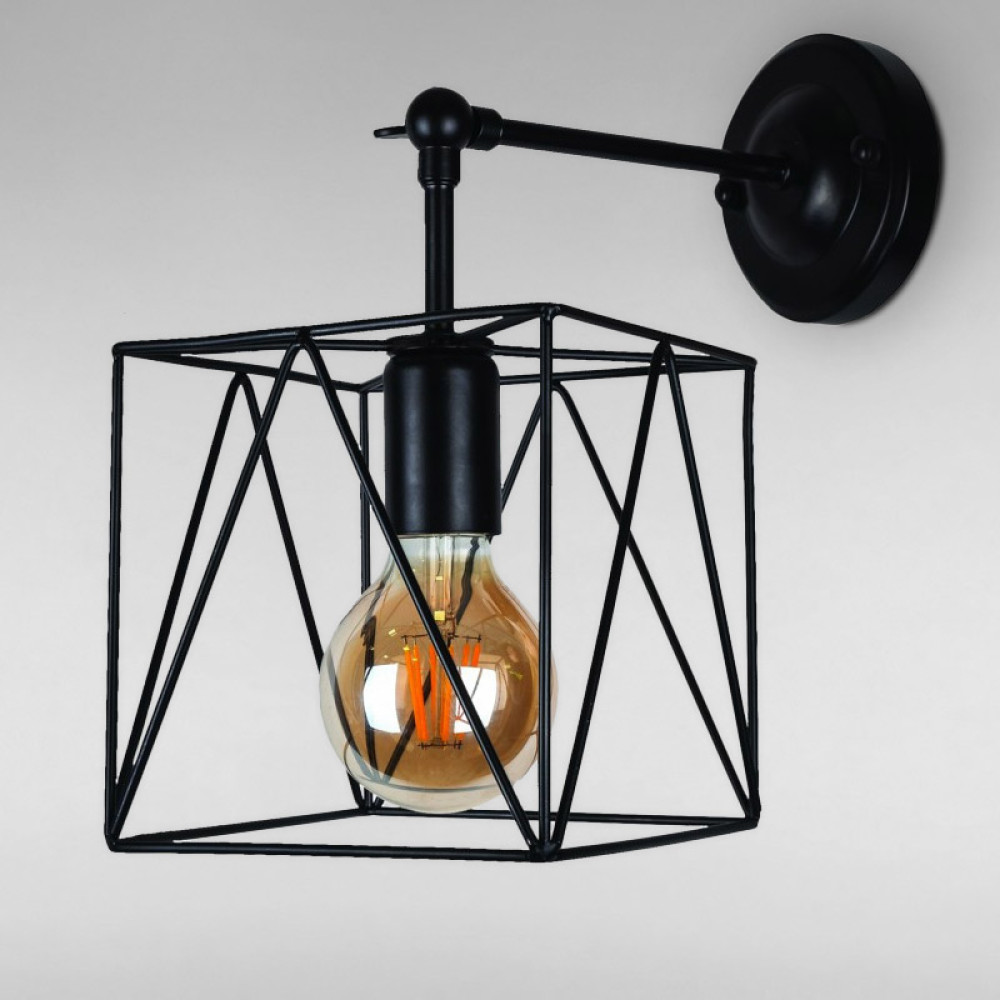 Бра на одну лампу в модному стилі лофт з поворотним металевим плафоном квадратної форми.