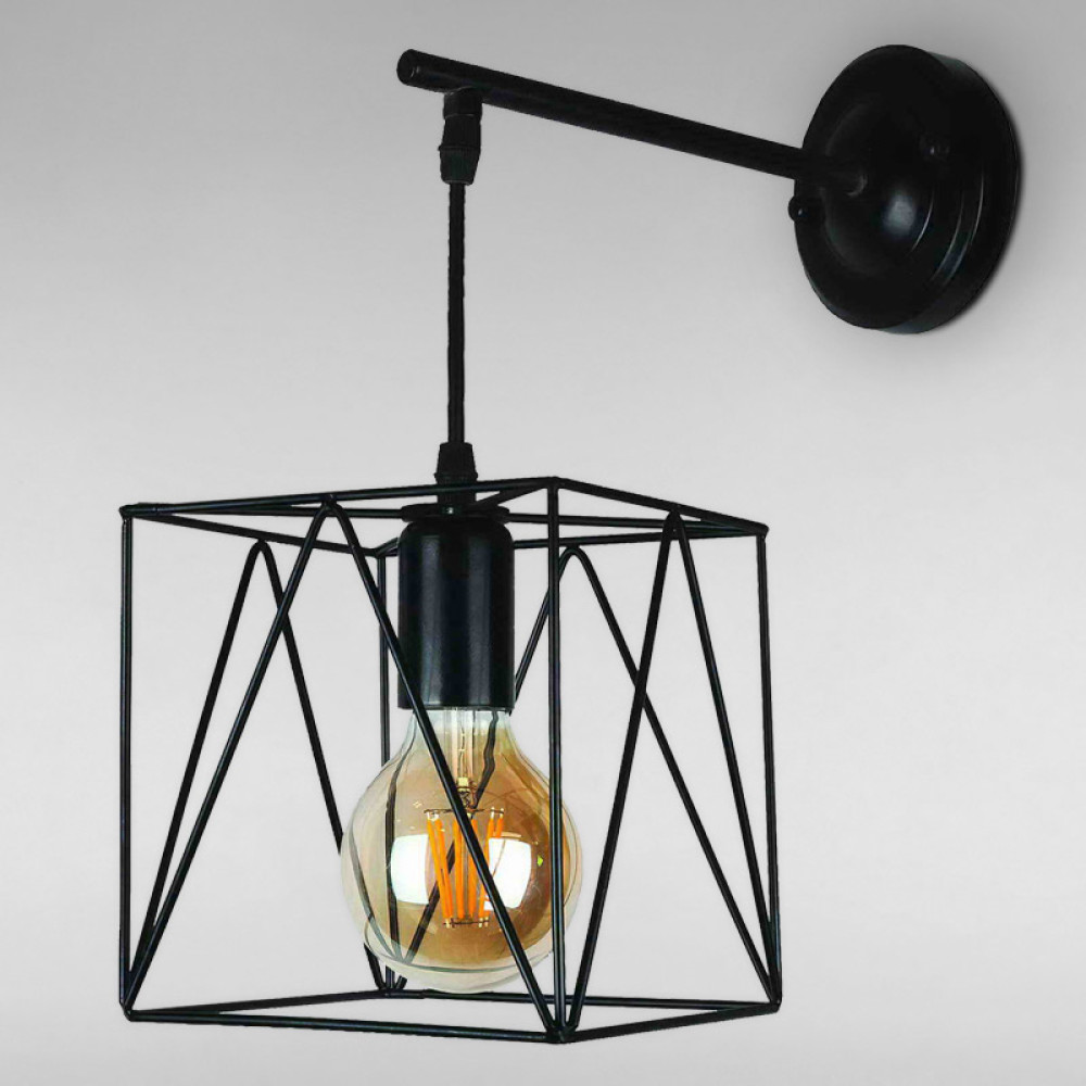 Бра на одну лампу в модному стилі лофт з підвісним металевим плафоном квадратної форми.