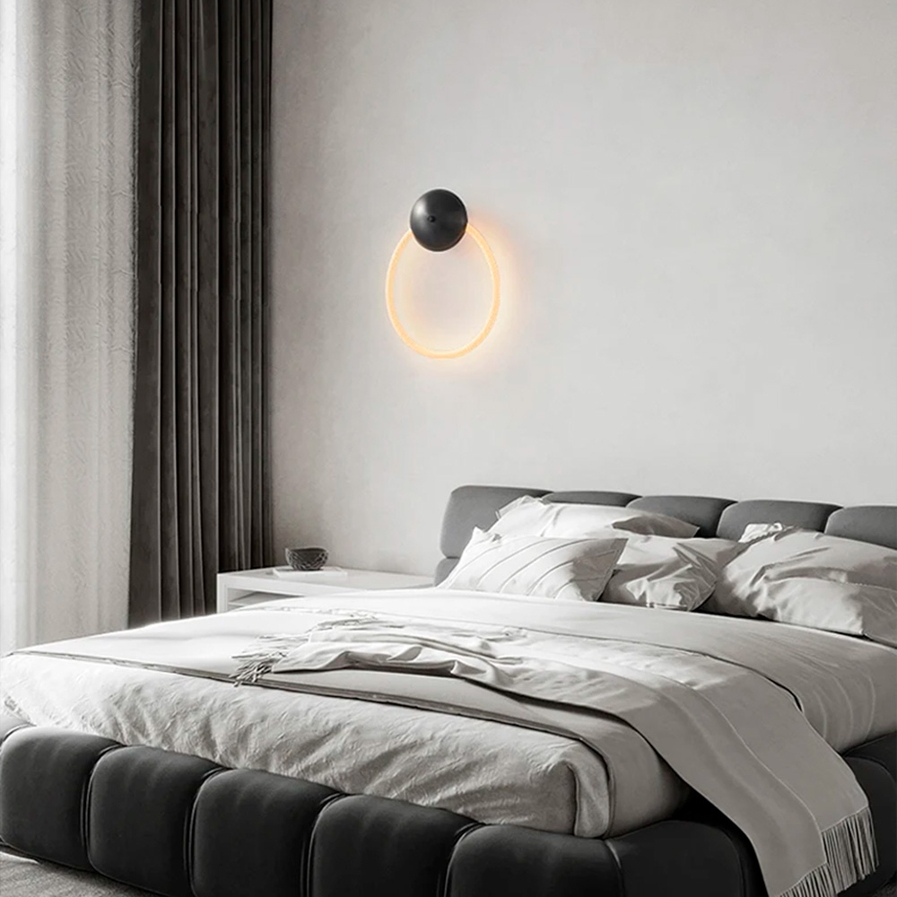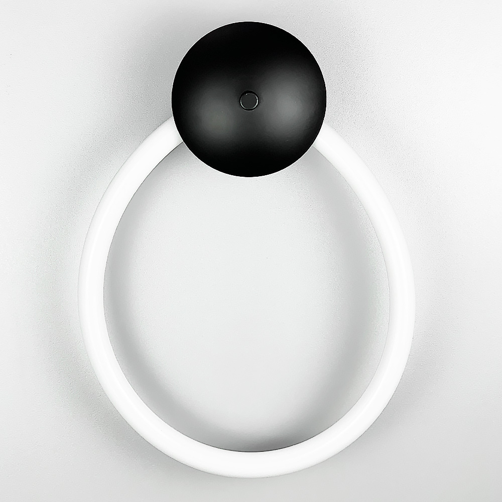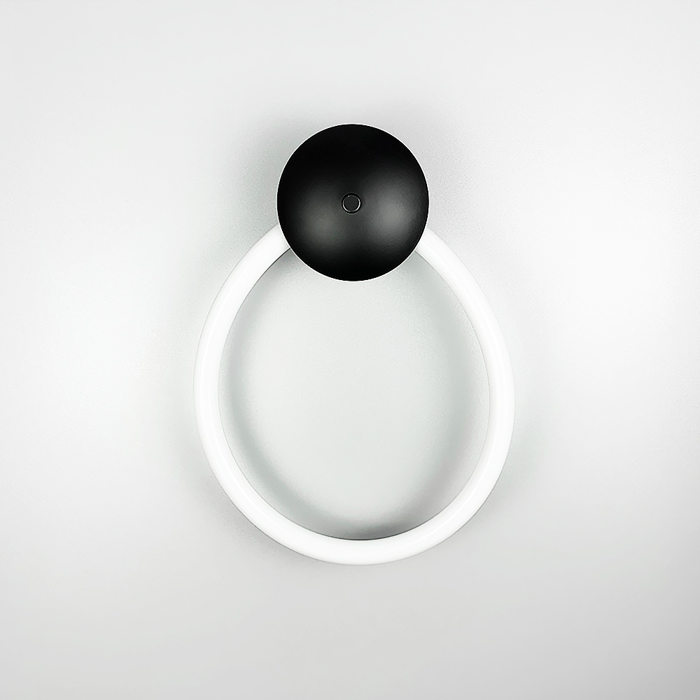 Інноваційний настінний світильник. Корпус світильника виконаний з чорного металу і чудово поєднується з гнучкою стрічкою в білому кольорі. Світильник має нейтральне денне світло.