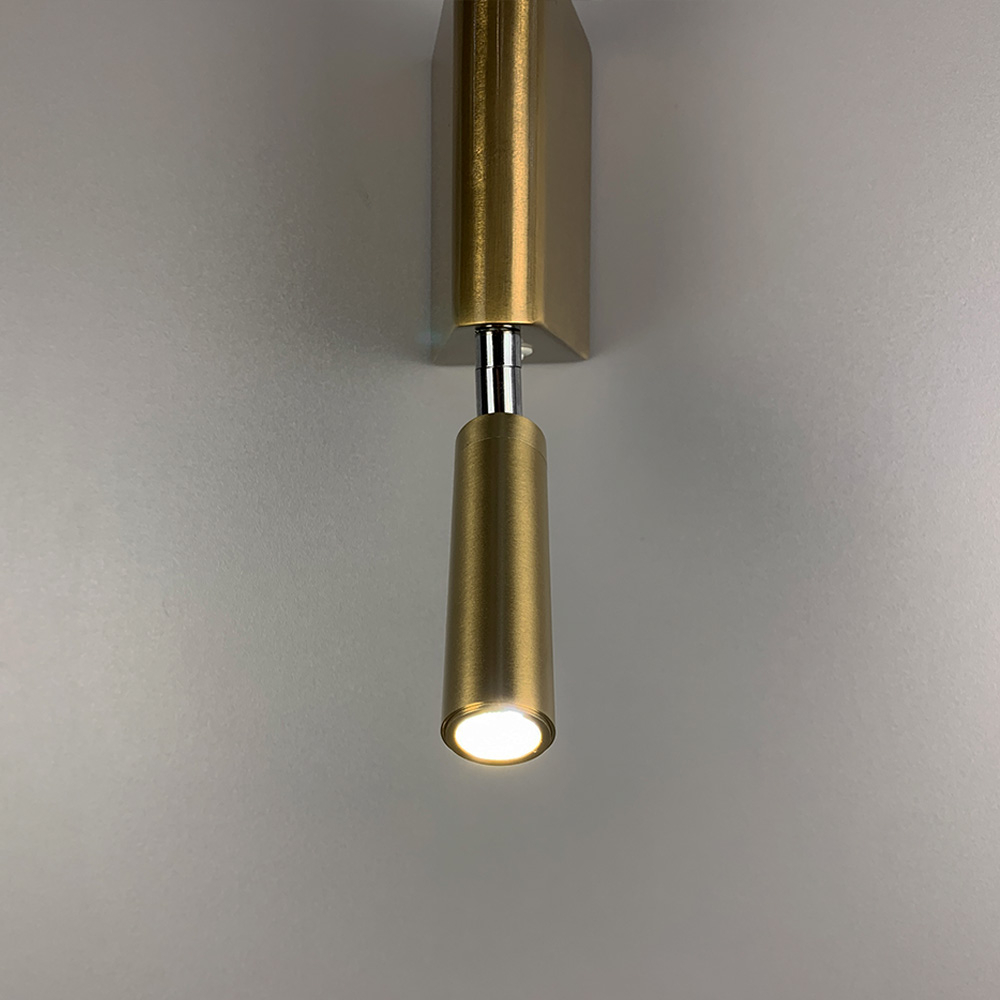 Настінний світильник на 2 джерела освітлення: підсвічування стіни + спот, що регулює. Потужність 5 Вт (2 Вт нижній спот, 3 Вт верхній). 2 вимикачі на корпусі.