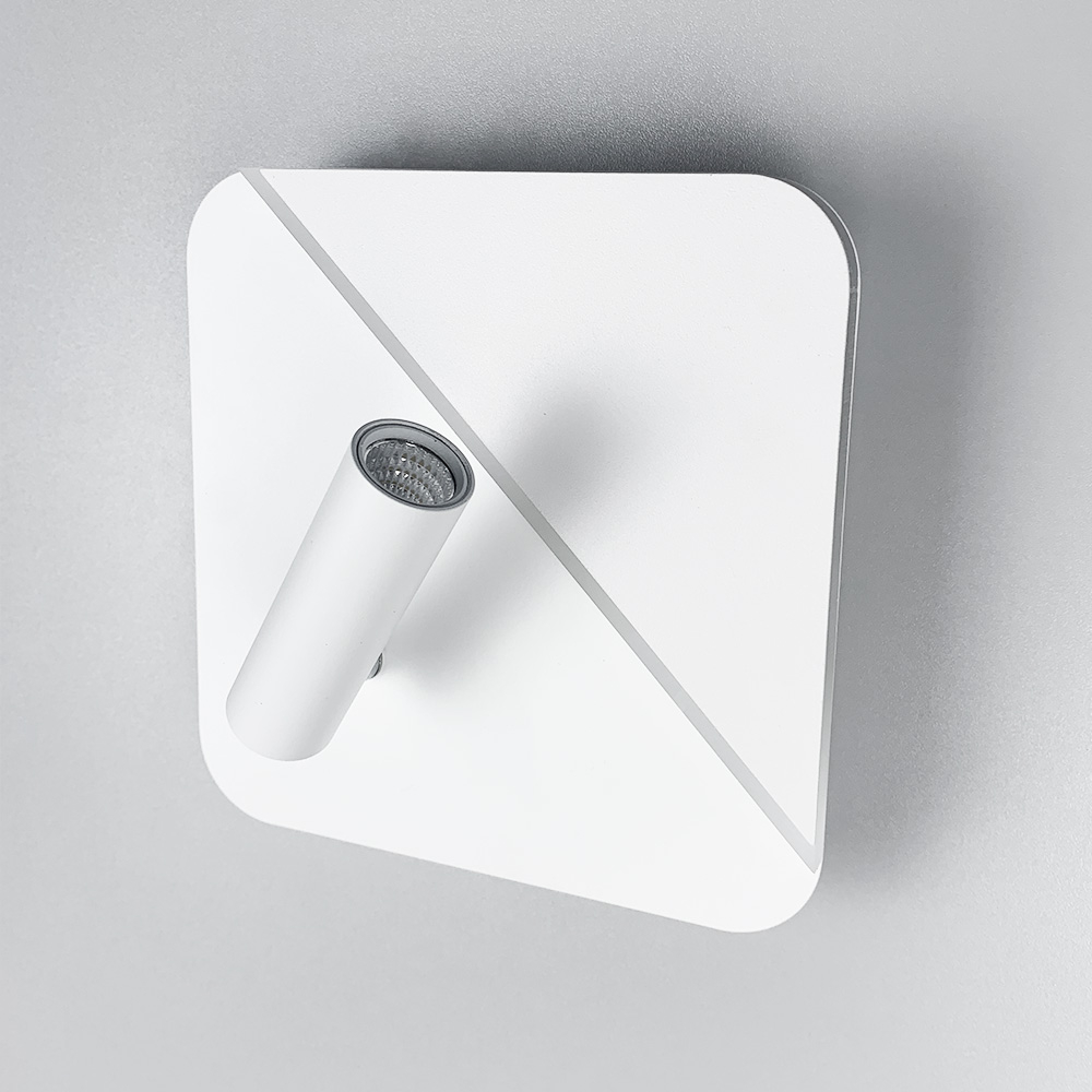 Світильник має нейтральне світло та 2 вимикачі на корпусі. Розмір 18х18 см. Потужність 10 Вт (3 Вт – спот/7 Вт – лід елемент).