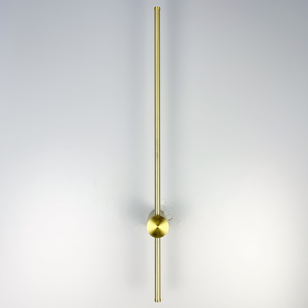 Дизайнерський настінний світильник бра в металевому корпусі кольору латунь, довжиною 100 см.