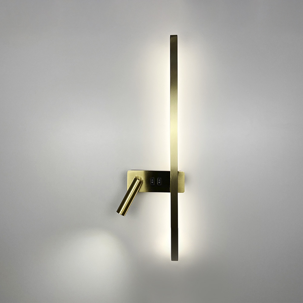 Настінний світильник світлодіодний Бра Light House LNF-17518/2 L AB 21W+4W 65см латунь зліва спот з 2-ма вимикачами