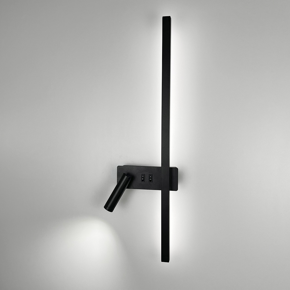 Настінний світильник світлодіодний Бра Light House LNF-17518/2 L BK 21W+4W 65см чорний спот зліва з 2-ма вимикачами