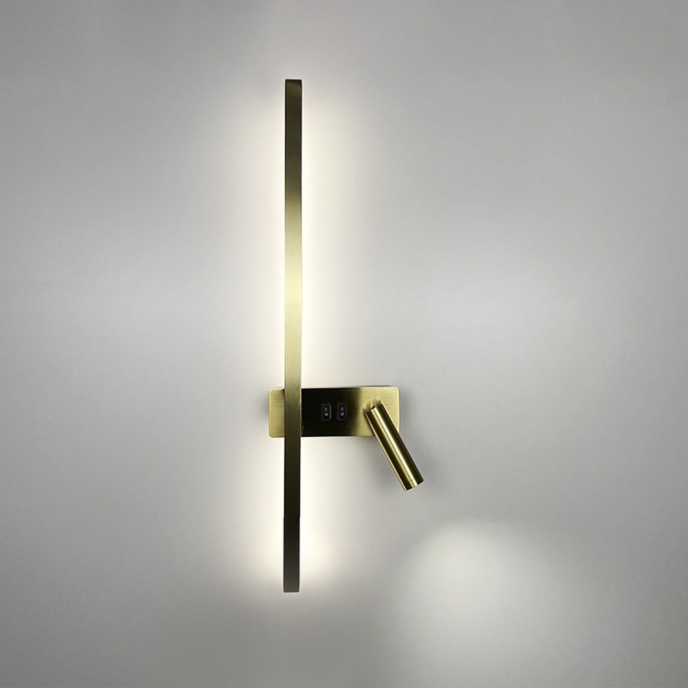 Настінний світильник світлодіодний Бра Light House LNF-17518/2 R AB 21W+4W 65см латунь праворуч спот з 2-ма вимикачами