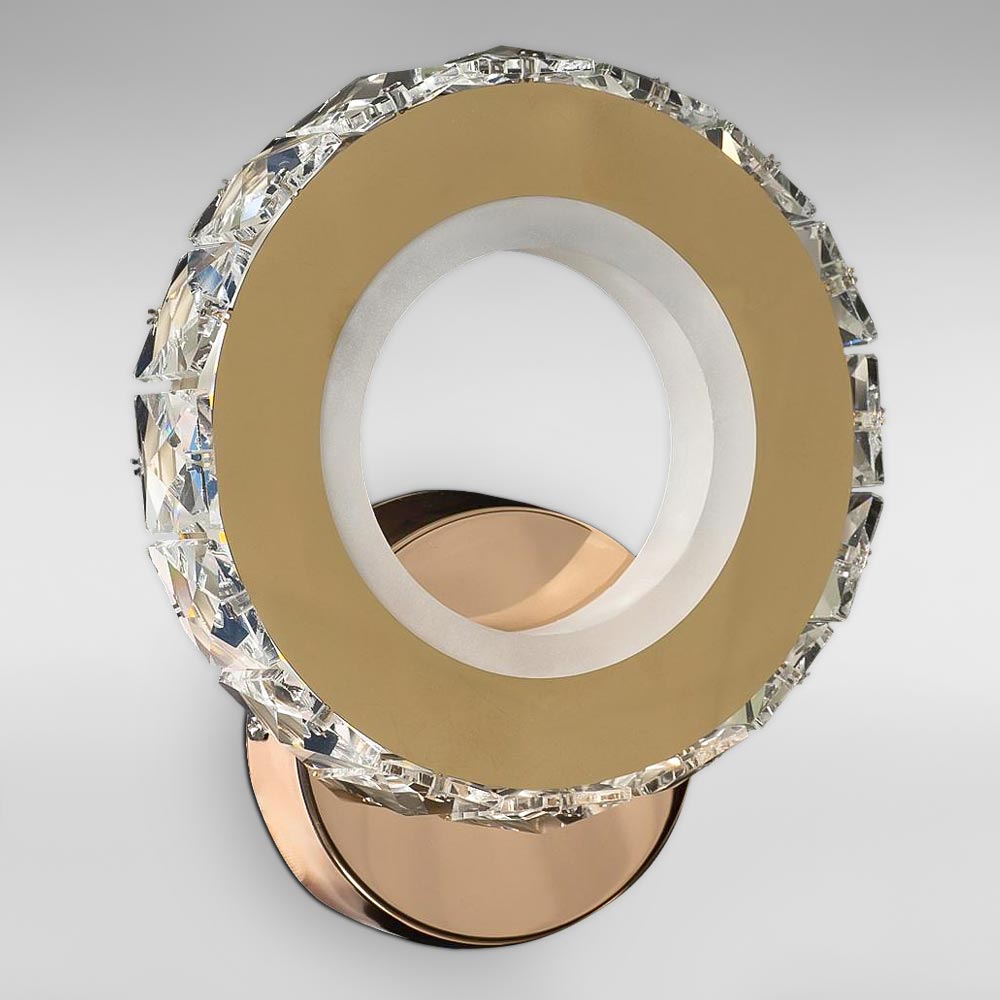 Настінний LED світильник Бра в сучасному стилі у вигляді світлодіодного кільця з кришталевими елементами на круглій основі.