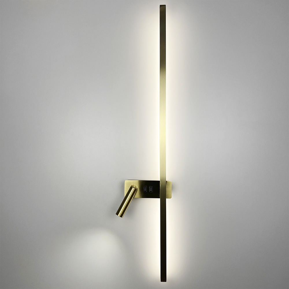Настінний світильник світлодіодний Light House LNF-17518/2 L AB 22W+4W 100см латунь зліва спот з 2-ма вимикачами