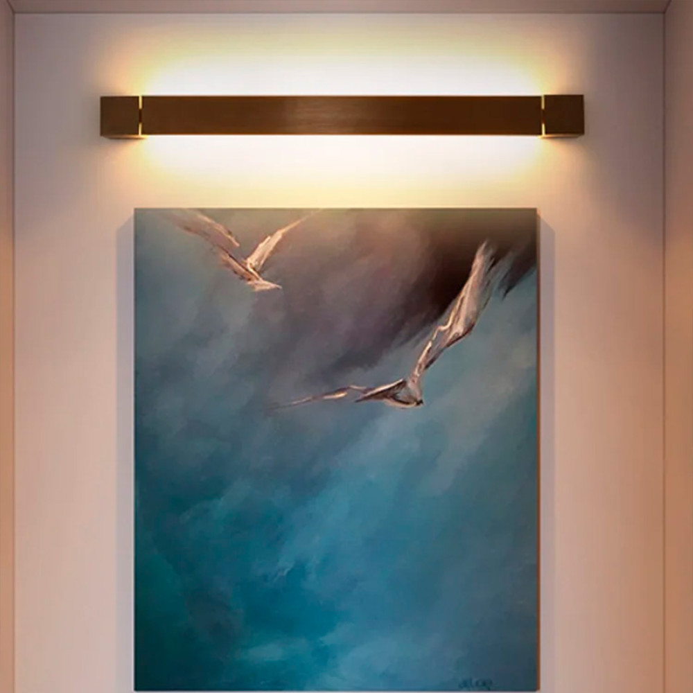 Сучасні лінійні бра, які можуть бути не тільки функціональним джерелом світла, але і стильною частиною інтер'єру. Особливістю цієї моделі є регулюючий механізм світлової частини, що дозволяє наводити світловий потік в потрібну сторону. Дана модель представлена у трьох довжинах корпусу: 49, 73, 105 см, потужністю відпоавідно 11 Вт, 18 Вт, 28 Вт. Основа з кріпленням: 8,5х5х4 см, 11х5х4 см, 11,5х5х4 см. Габарити 50х9х6 см, 74х9х6 см, 106х9х6 см. Вбудовані світлодіоди, нейтральне світло 4000К.
